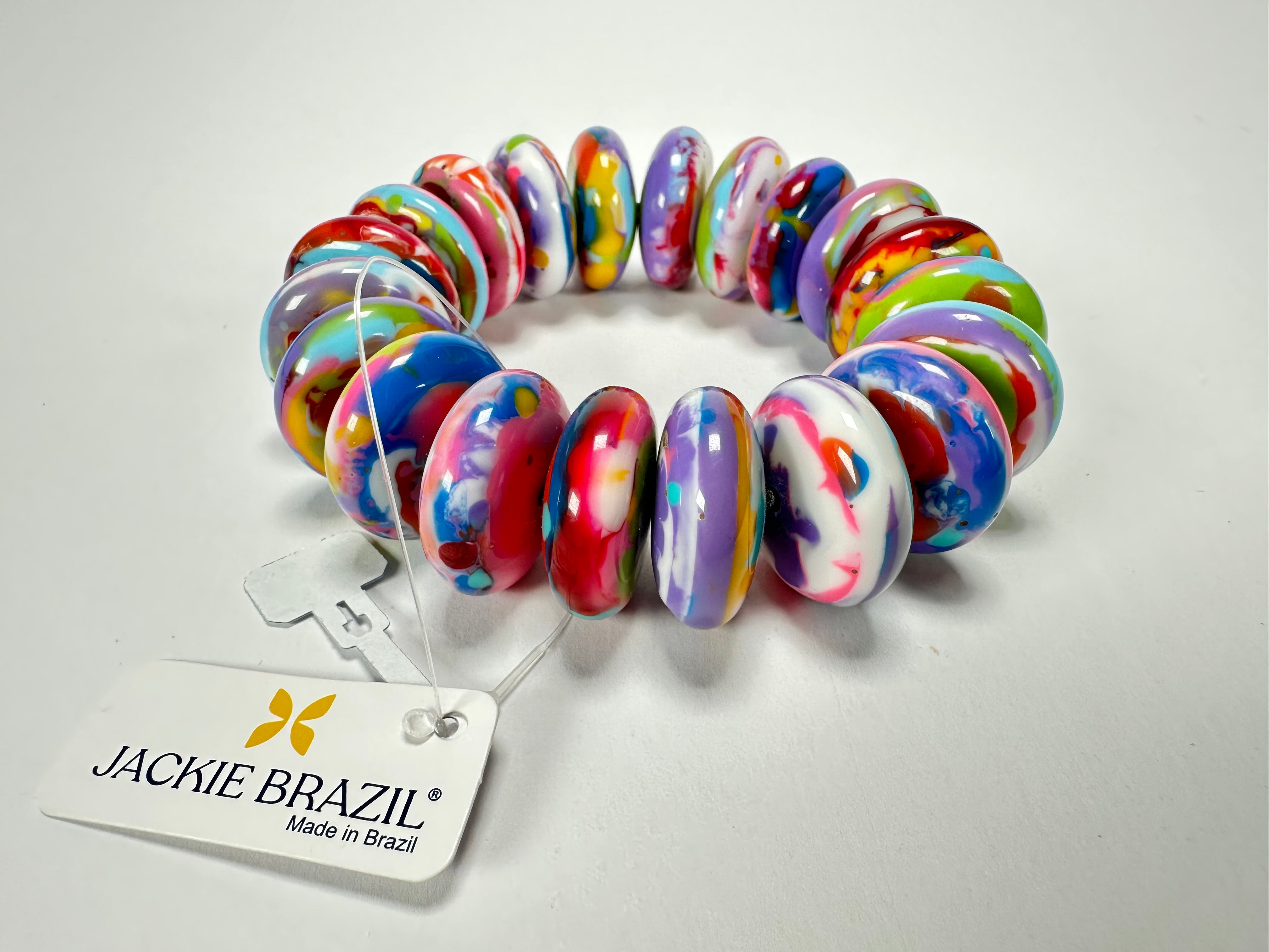 Jackie Brazil "Ana" Kandinsky Elasticated Wheels Resin Bracelet ( B0910 )