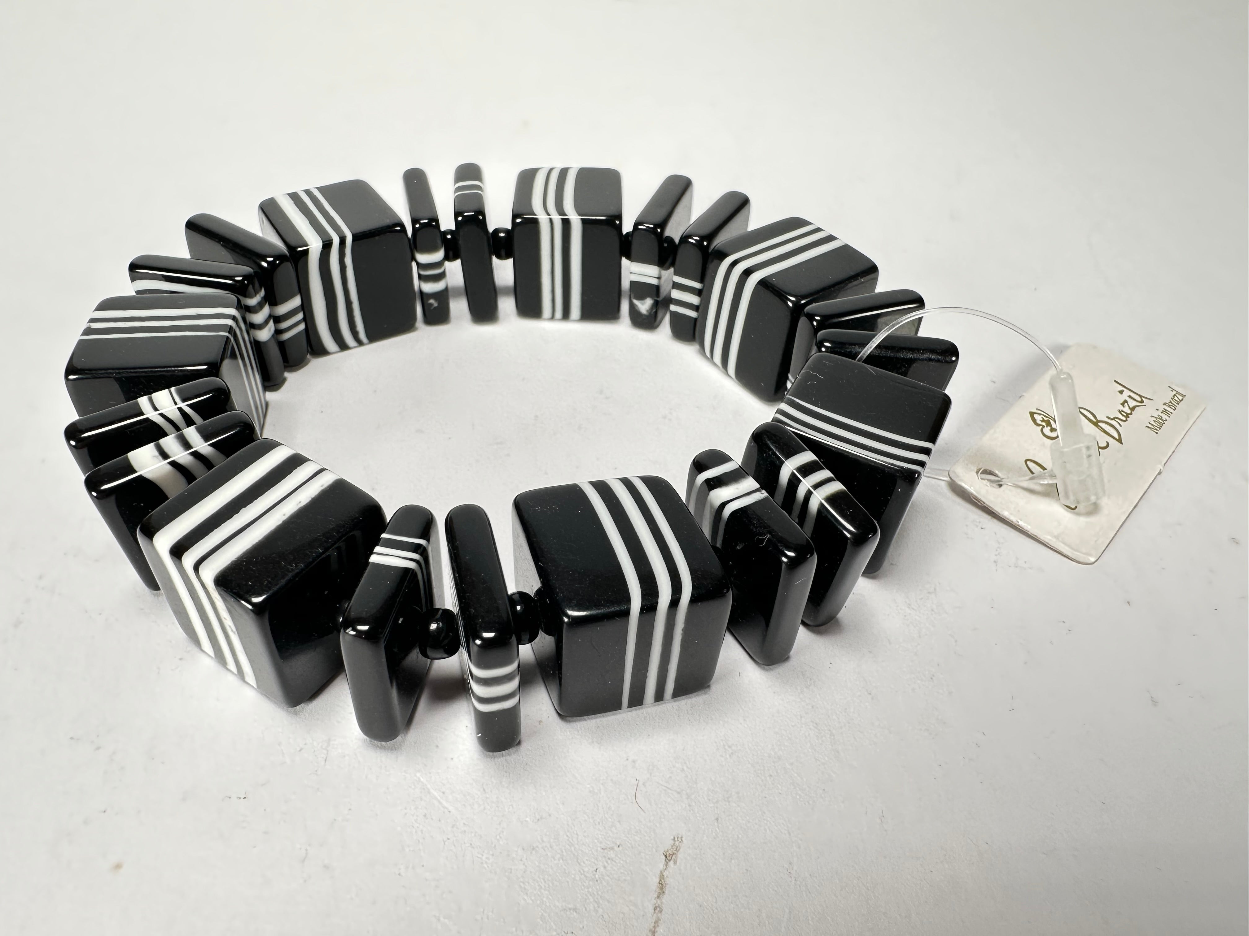 Jackie Brazil "Bar Code" Black & White Mix Squares Resin Bracelet ( B2201 )Available in other designs. Brand New with TagsDimensionsWeight :