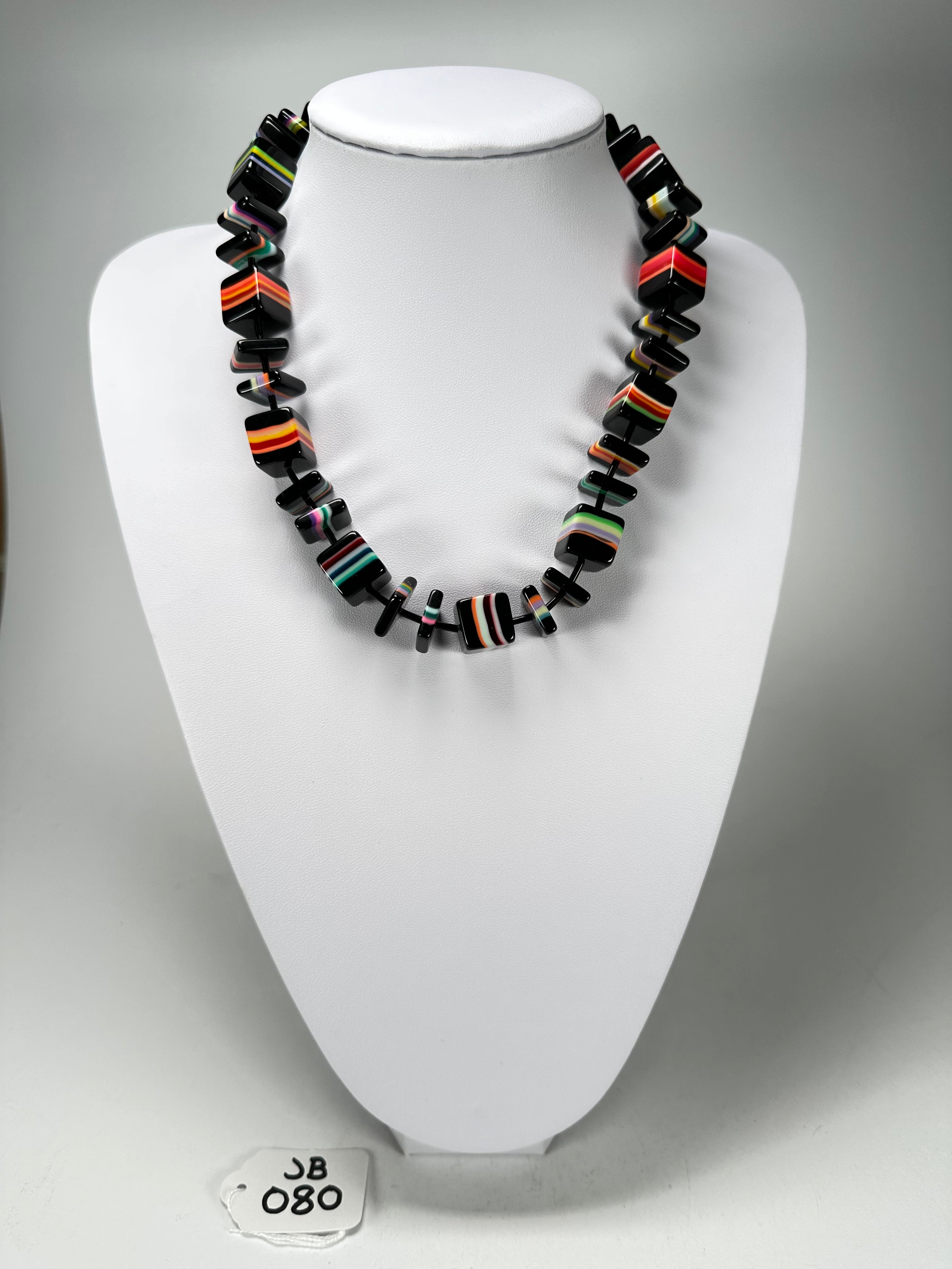 Jackie Brazil "Bar Code" Mix Black & Liquorice Squares Short Resin Necklace ( N2202 )