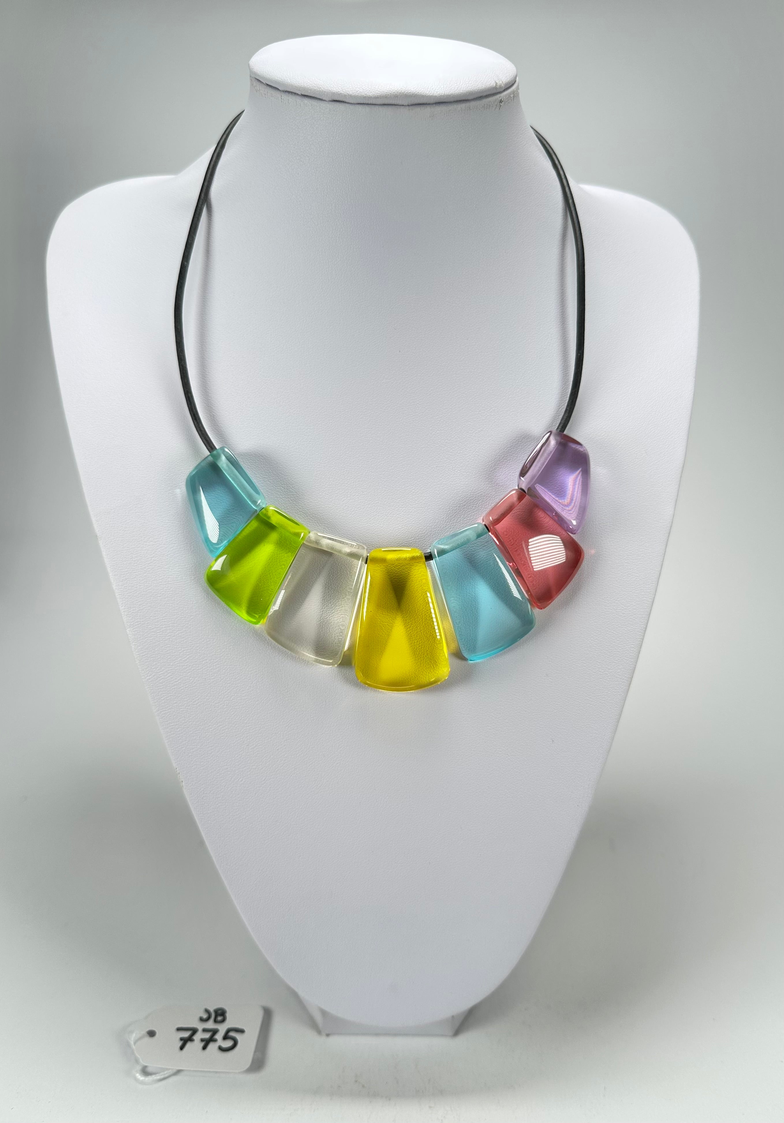 Jackie Brazil "Bella" Transparent Paris Mix 7 Piece on Leather Cord Choker Necklace ( N0035 )