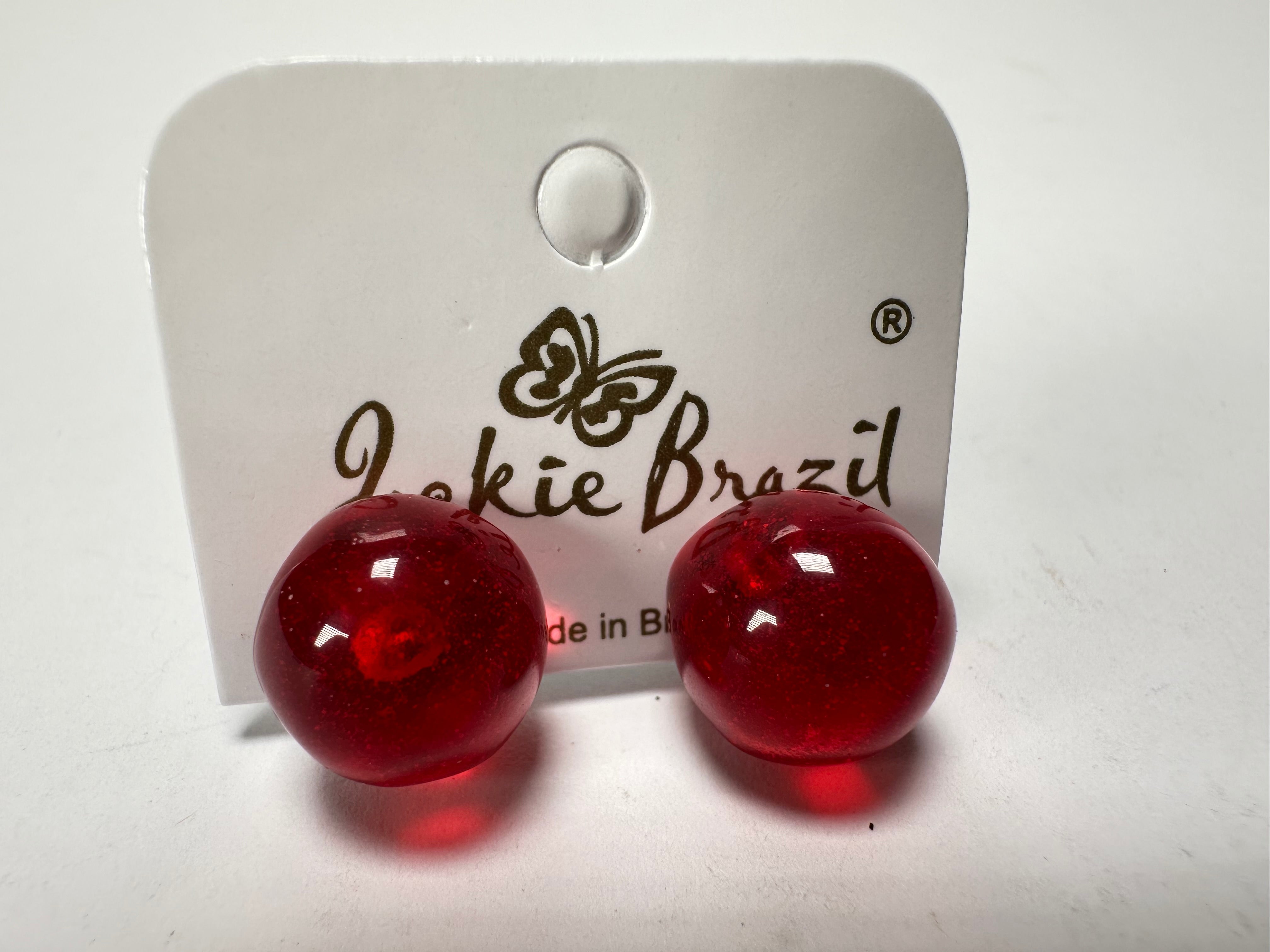 Jackie Brazil "Betty" Red Transparent Small Ball Stud Resin Earrings ( E0095 )