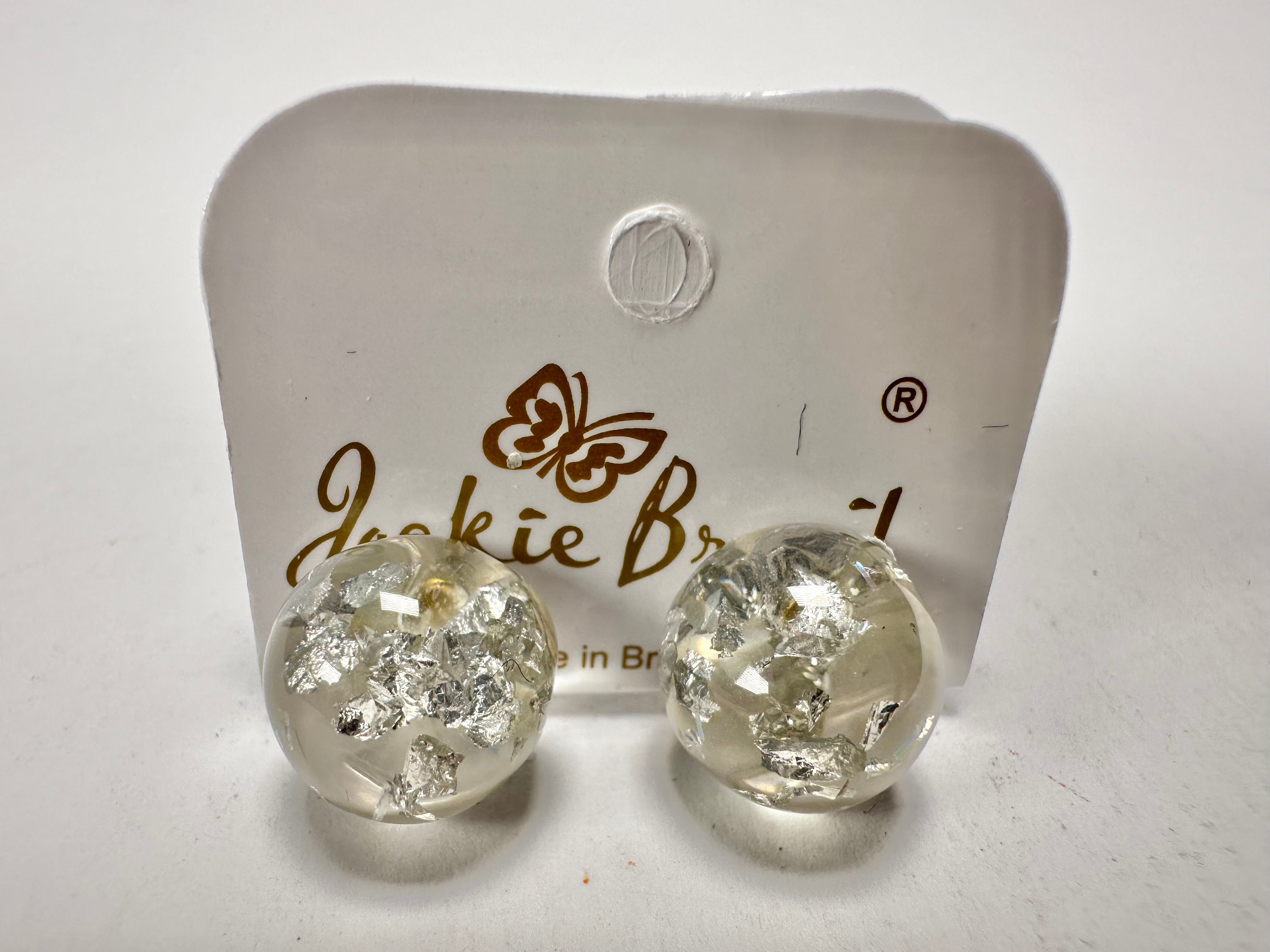 Jackie Brazil "Betty" Silver Flakes Small Ball Stud Resin Earrings ( E0095 )