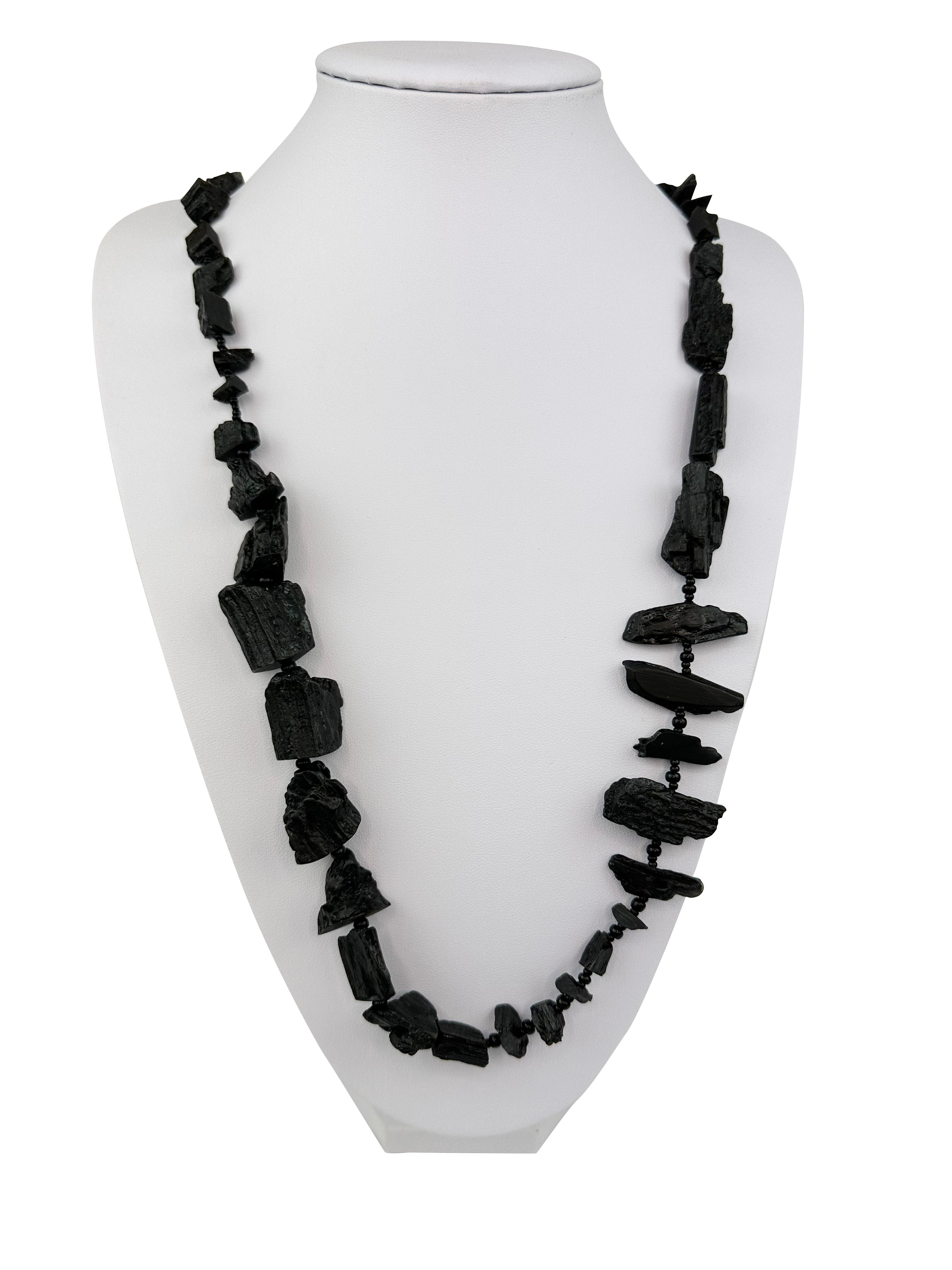 Jackie Brazil "Black Pieces" Charcoal Long 85cm Resin Necklace ( N2735 )