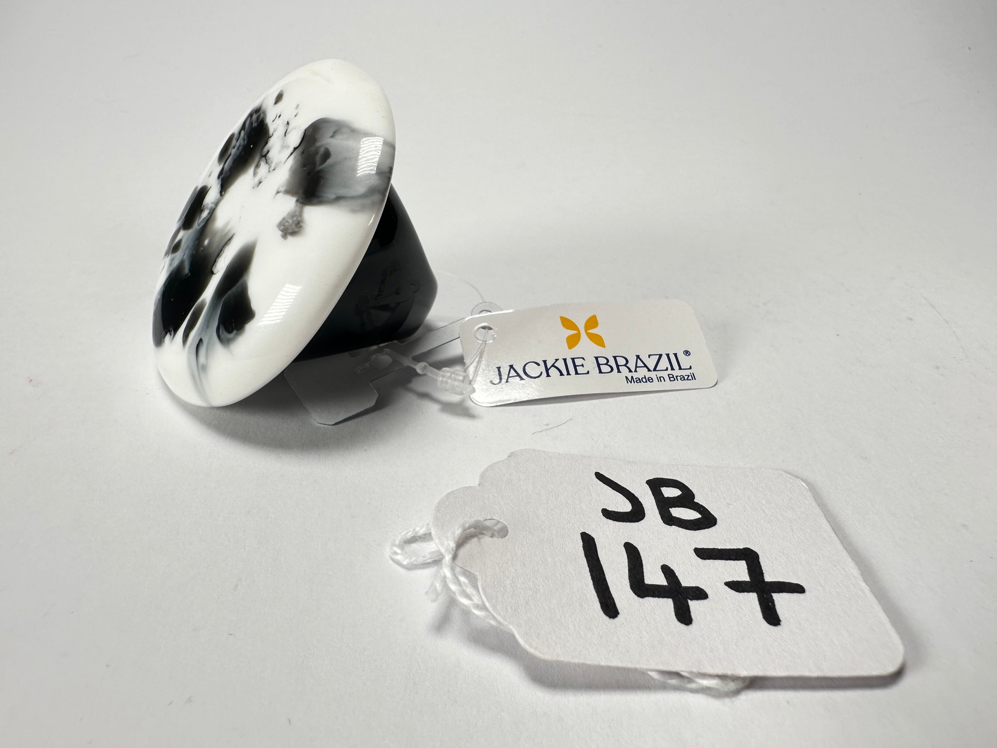 Jackie Brazil "Black & White Marble" Large Riverstone 40mm Ring ( R3605 ) Size UK - T / US-9