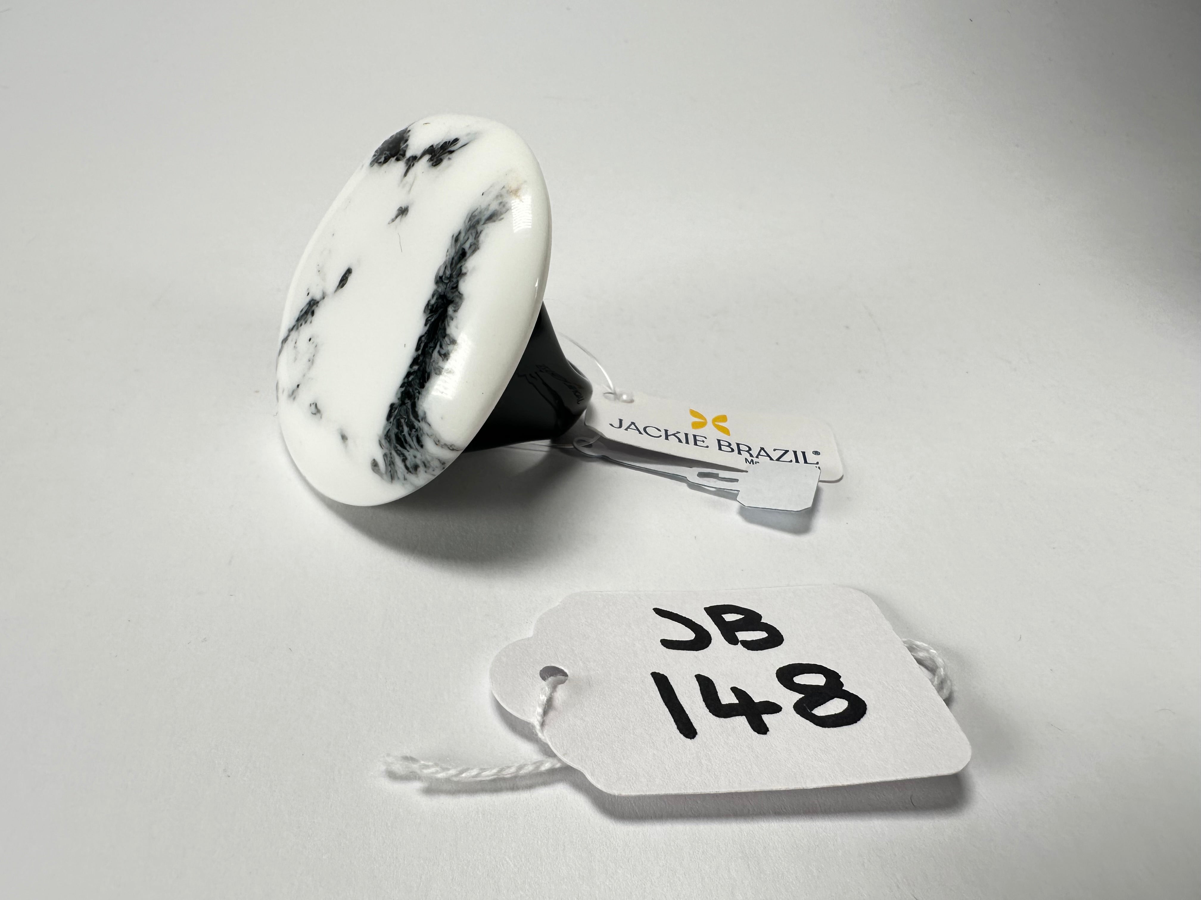 Jackie Brazil "Black & White Marble" Large Riverstone 40mm Ring ( R3605 ) Size UK - Z+1 / US- 13Available in other designs. Brand New with TagsDimensionsWeight :