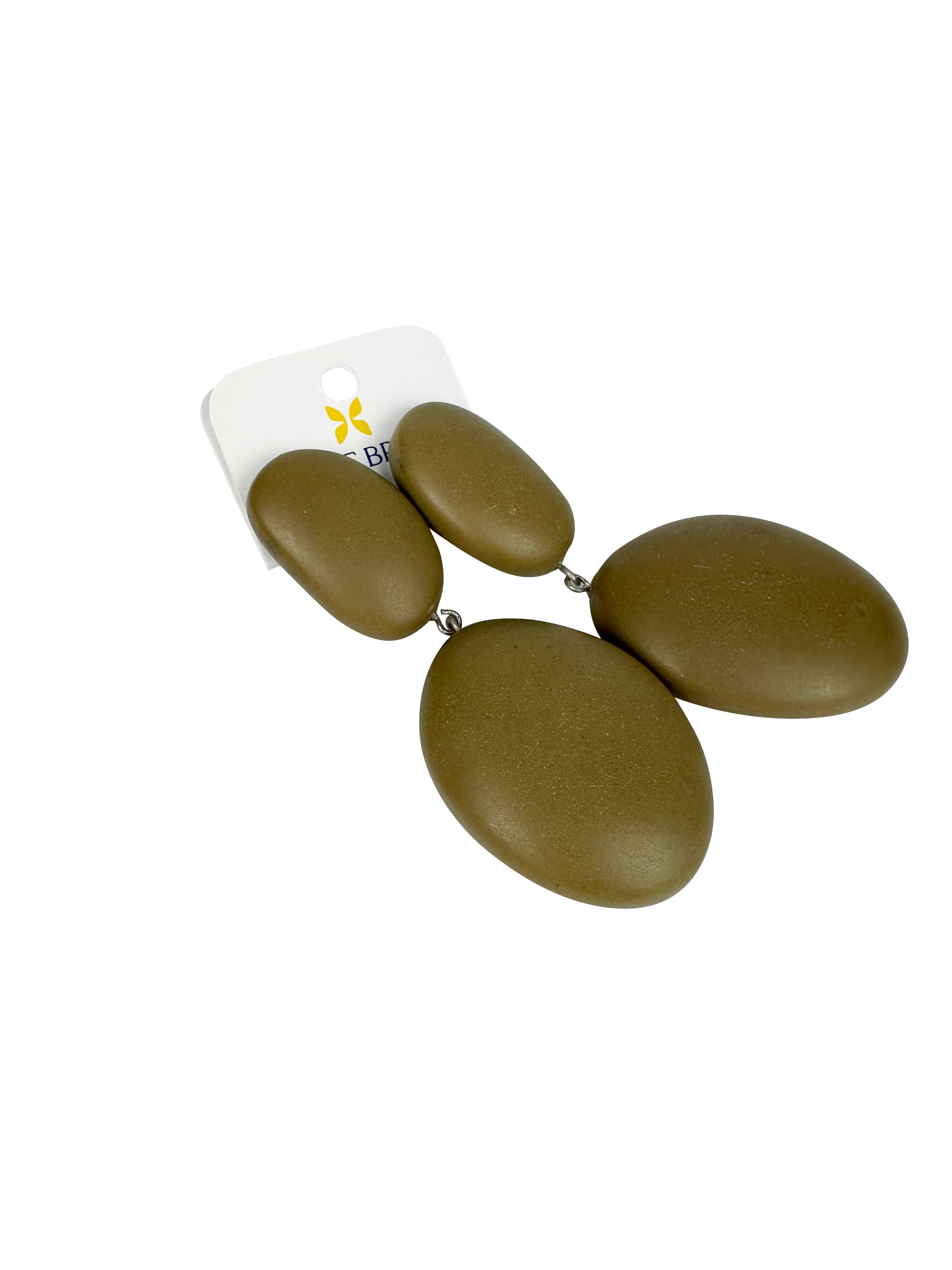 Jackie Brazil "Brown Matte" Medium Riverstone Double Pendant Resin Earrings ( E3900 )