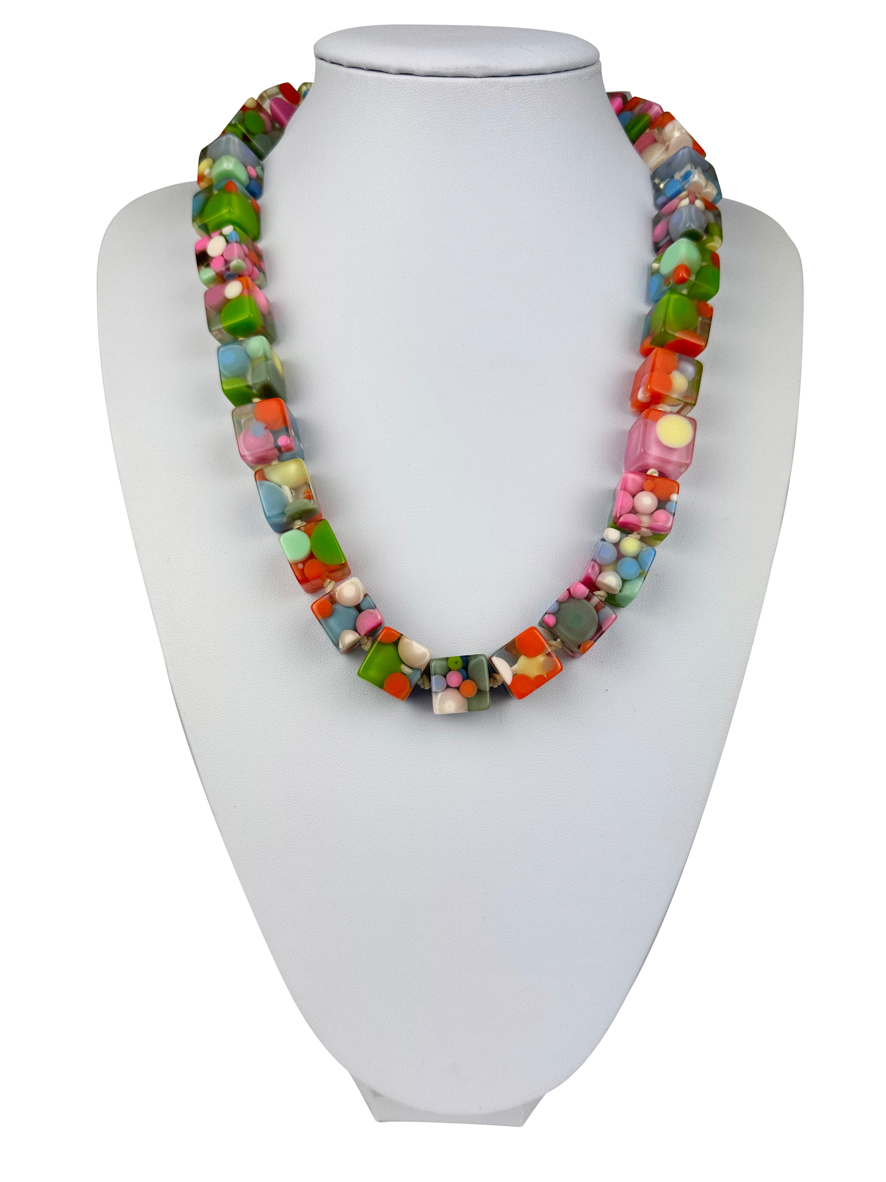 Jackie Brazil "Carlo Spotted Cubes" Spring Colour Spots Resin Necklace 50cm ( N1396 )