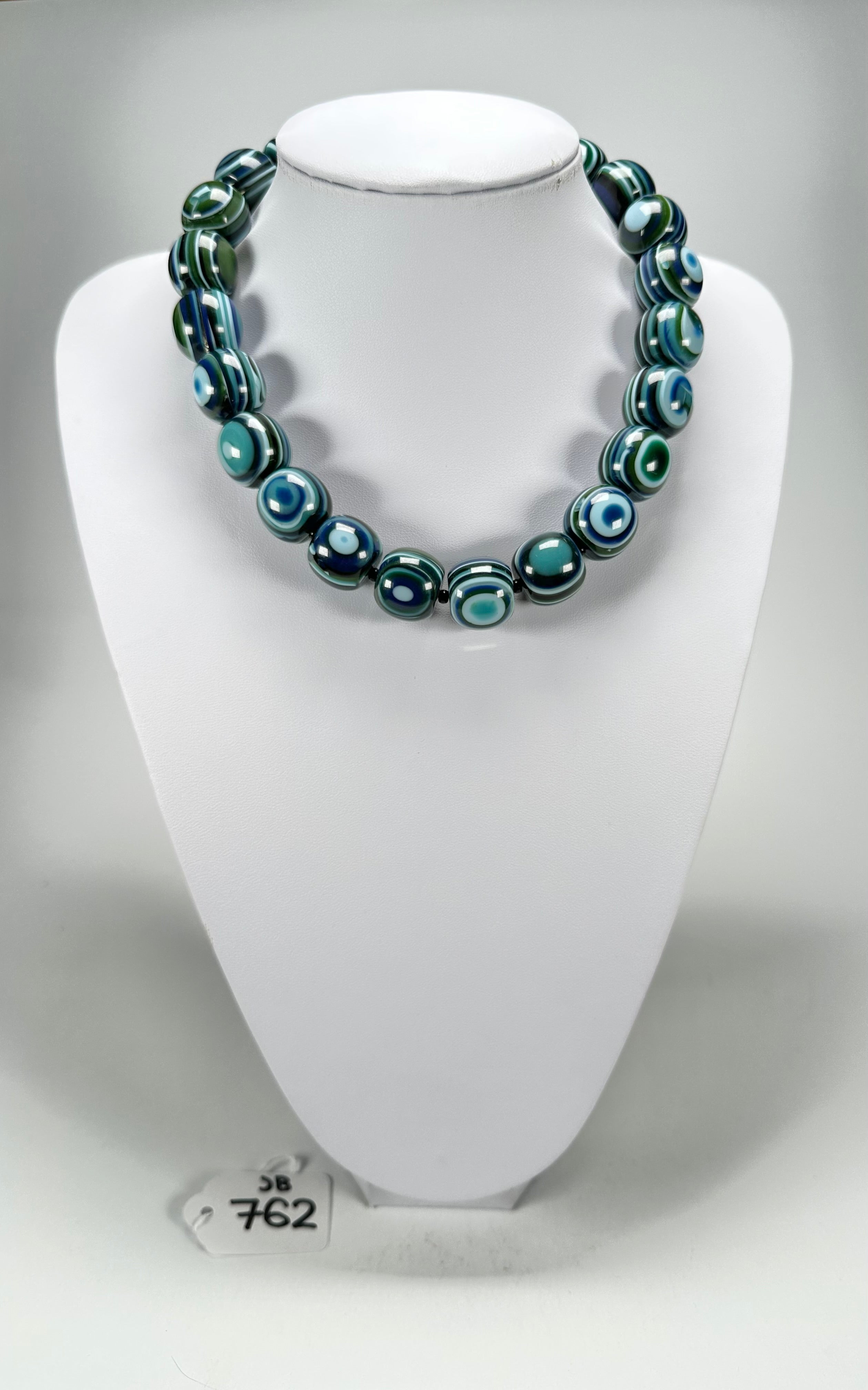 Jackie Brazil "Cat Eyes" Blue Mix Liquorice Balls Resin Necklace 50cm ( N0894 )