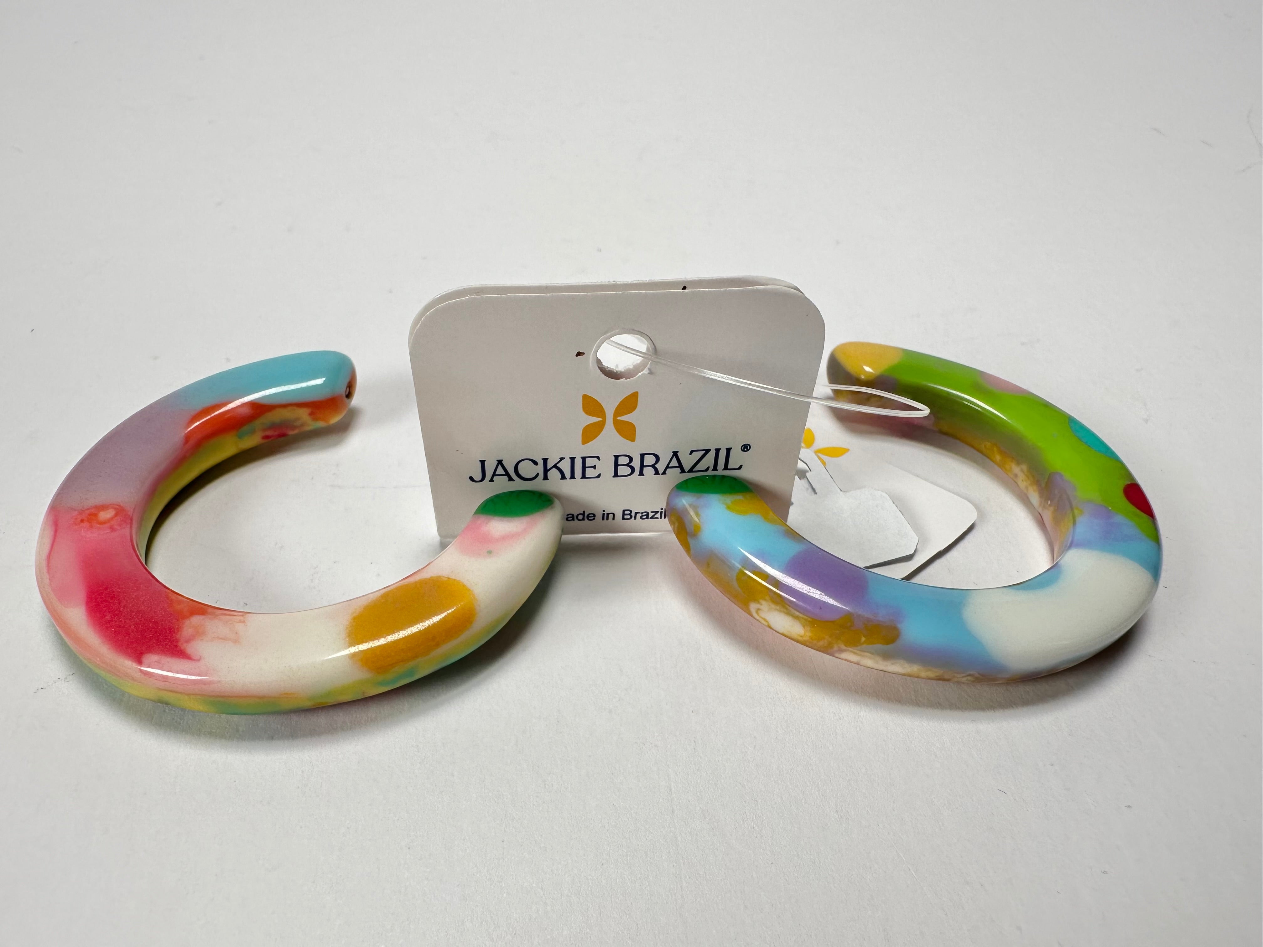 Jackie Brazil "Circus" Kandinsky Hoop On Pin Resin Earrings ( E0020 )