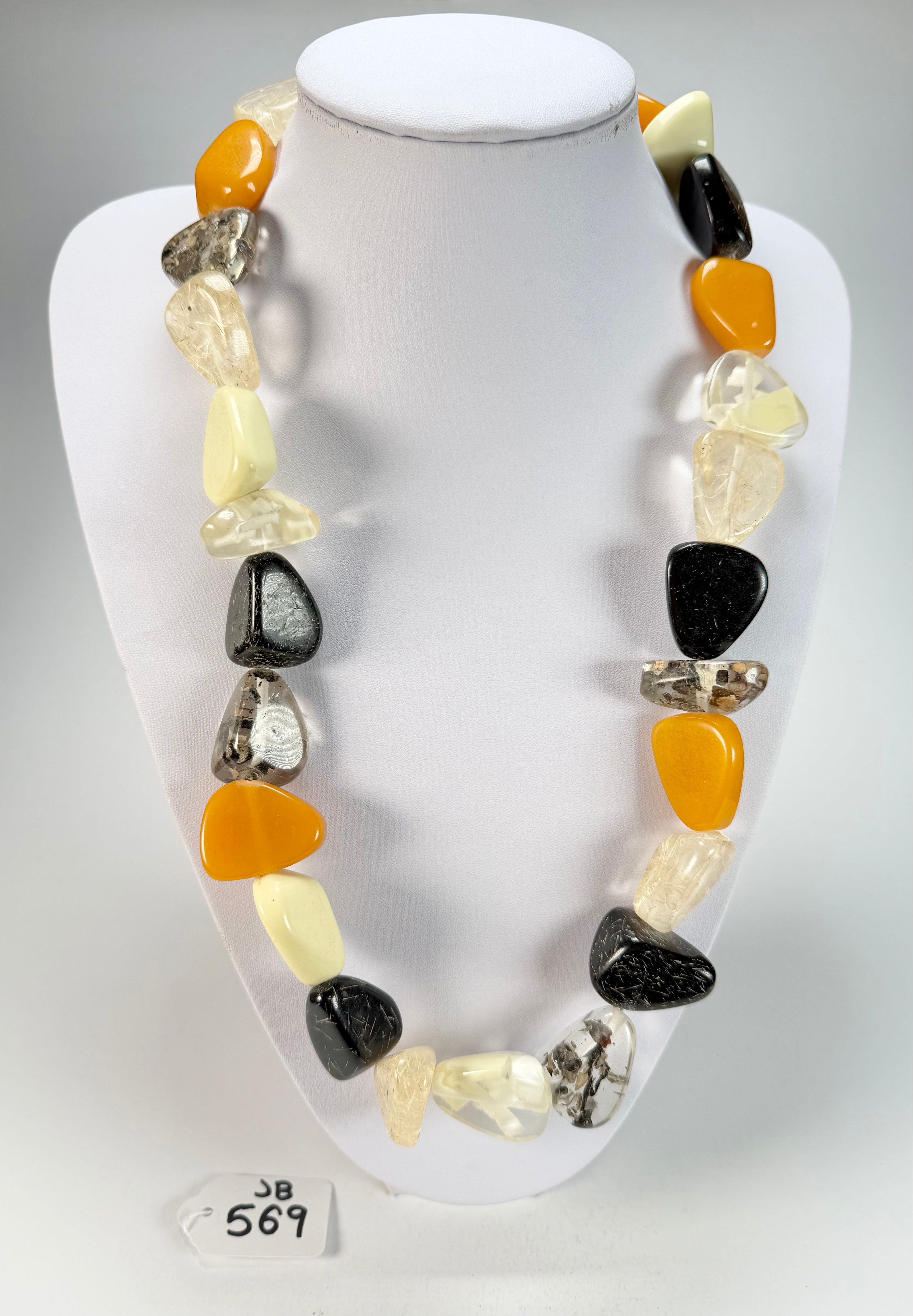 Jackie Brazil "Diamonds" Seasons Mix Flintstone Bone 80cm Necklace ( N0080 )