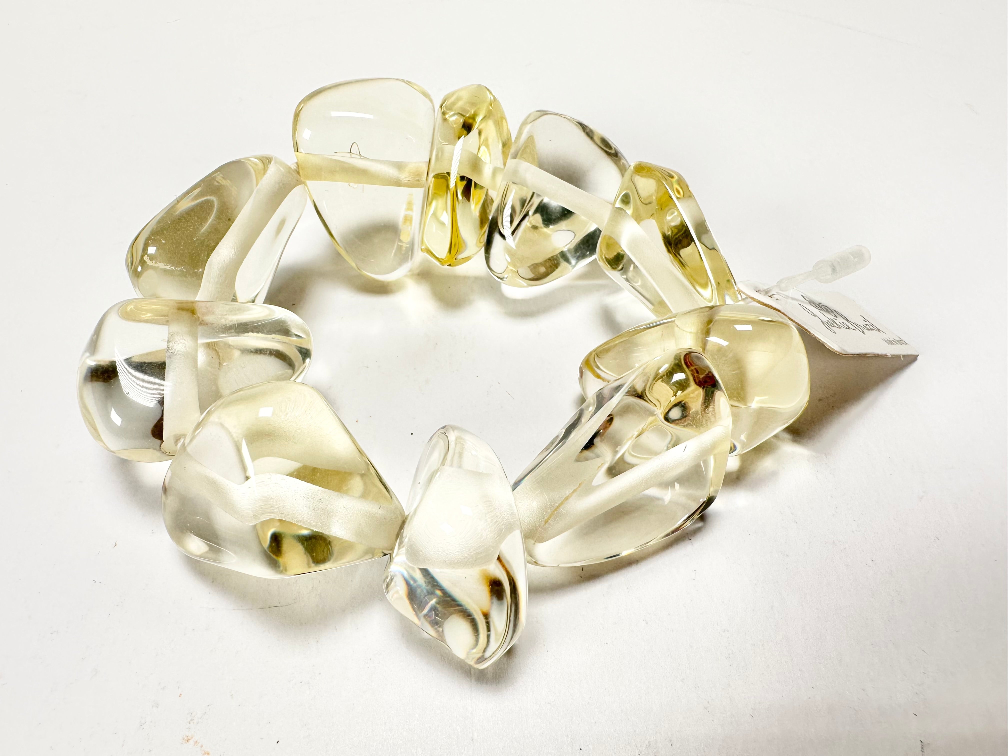 Jackie Brazil "Diamonds" Transparent Crystal Flintstone Bone Bracelet ( B0211 )