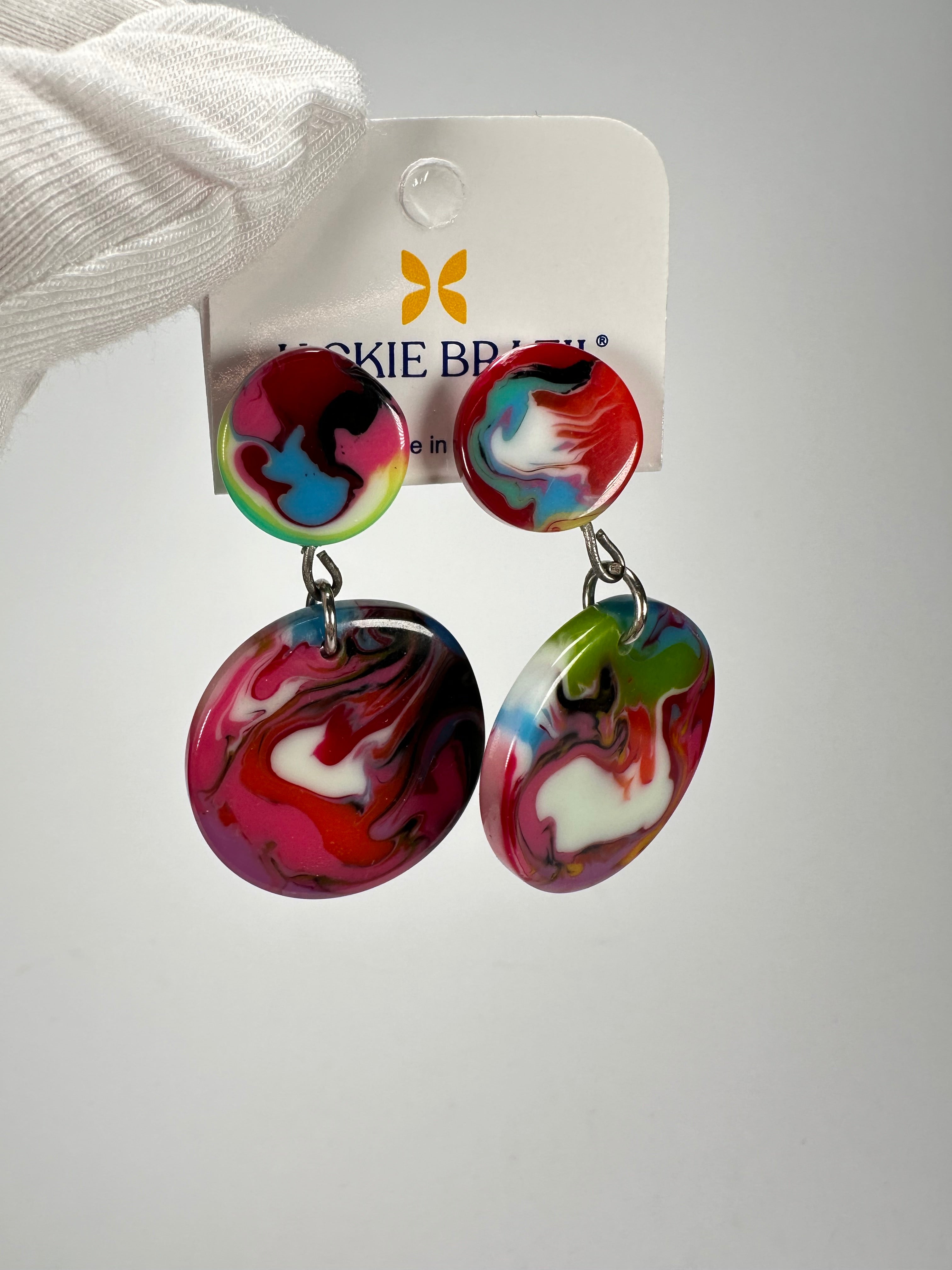 Jackie Brazil "Duo Stud" Kandinsky Disk On Pin Resin Earrings ( E0520 )