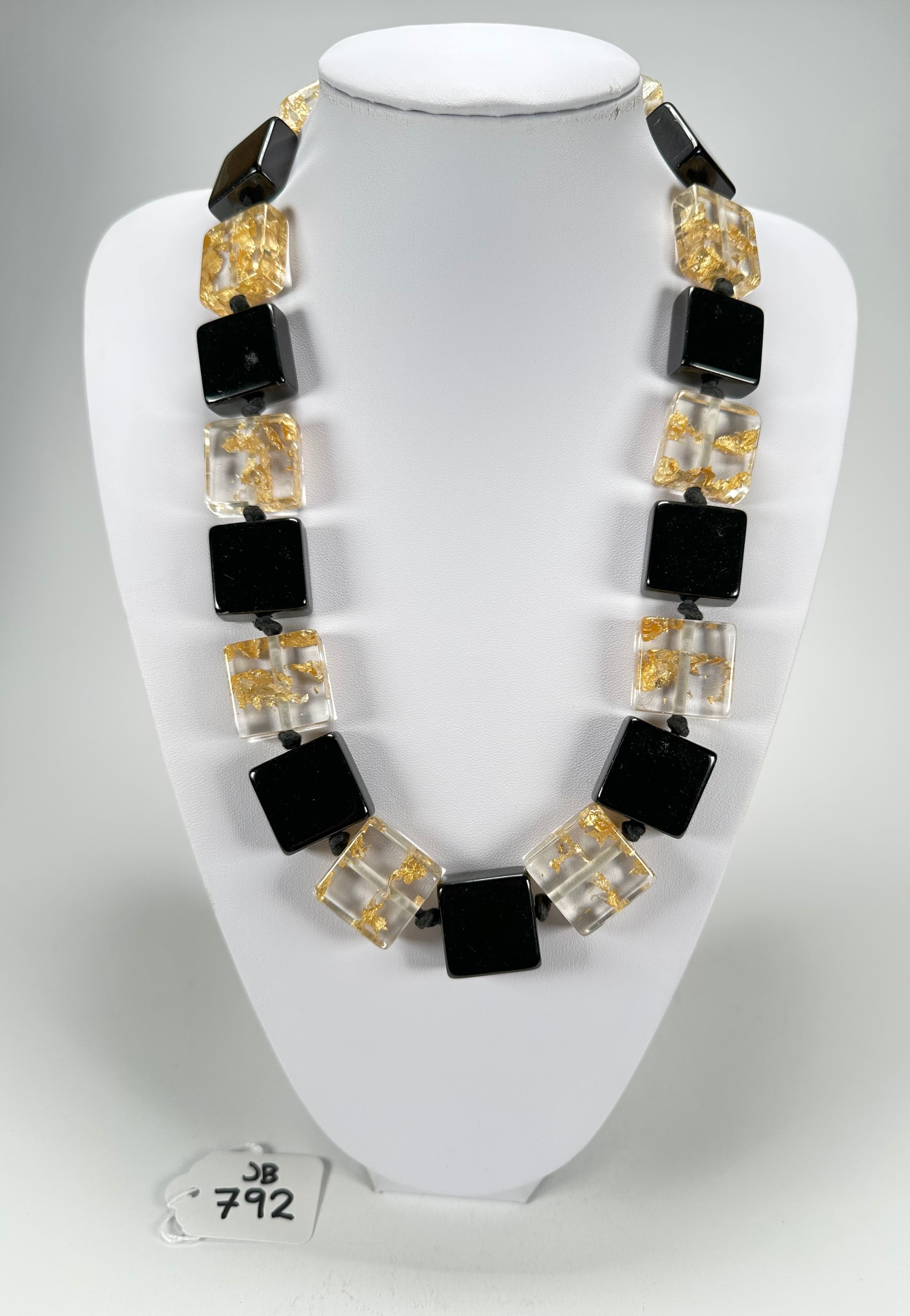 Jackie Brazil "Gala" Black & Gold Flakes Half Rectangles 65cm Necklace ( N0789 )