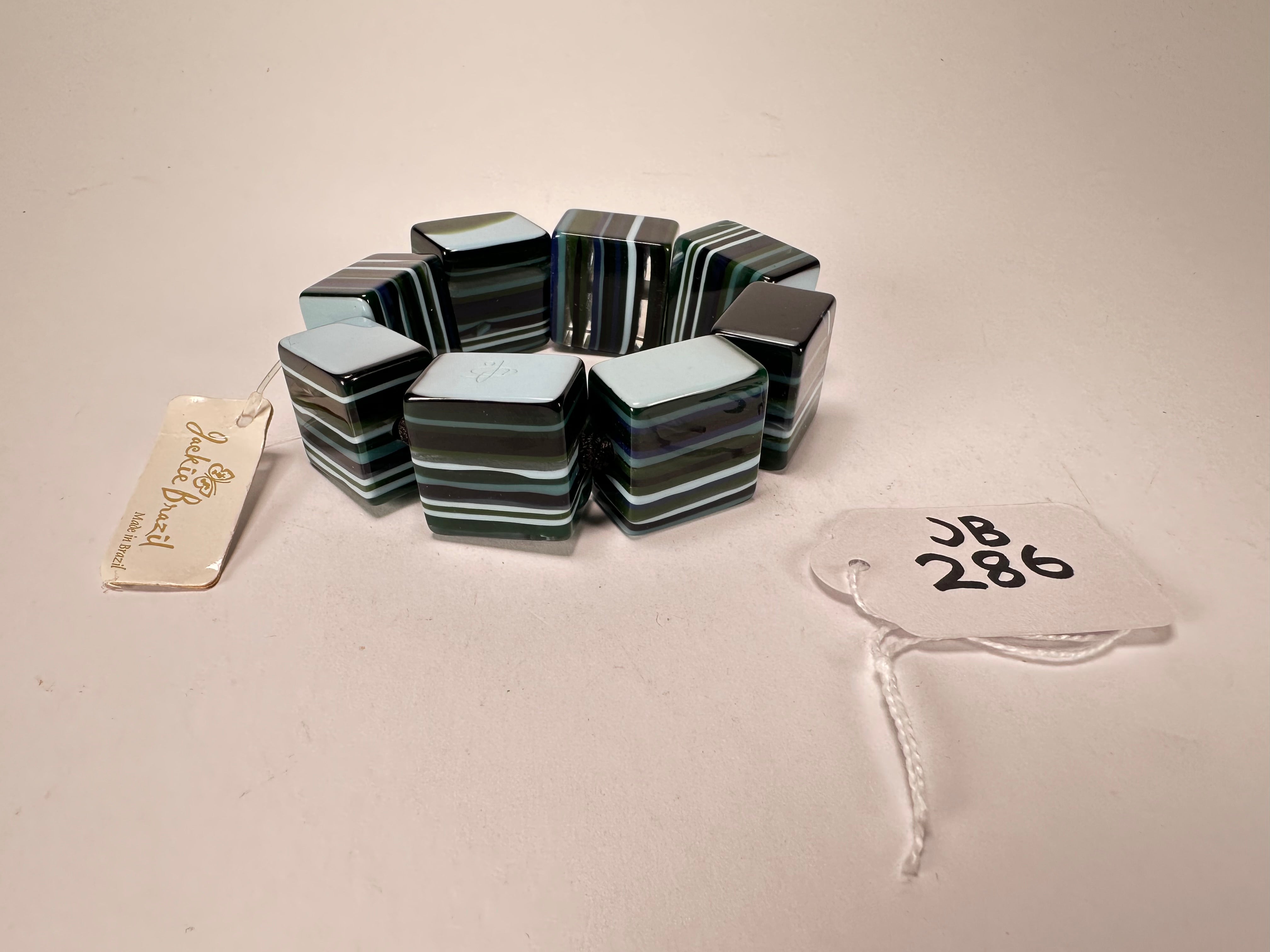 Jackie Brazil "Gala" Liquorice Half Rectangles On Elastic Blue Mix Bracelet ( B0778 )