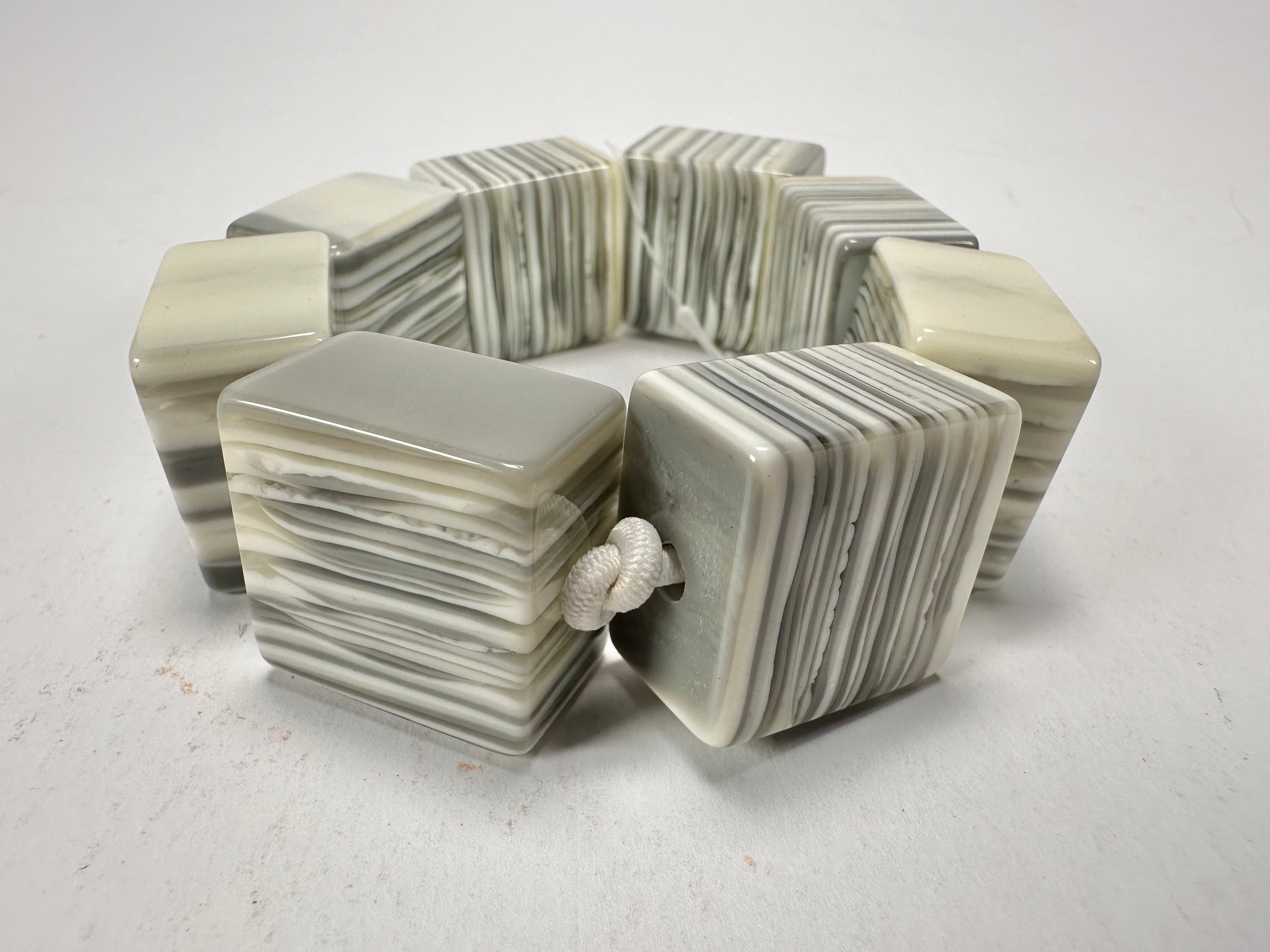 Jackie Brazil "Gala" Liquorice Half Rectangles On Elastic Cream Mix Bracelet ( B0778 )