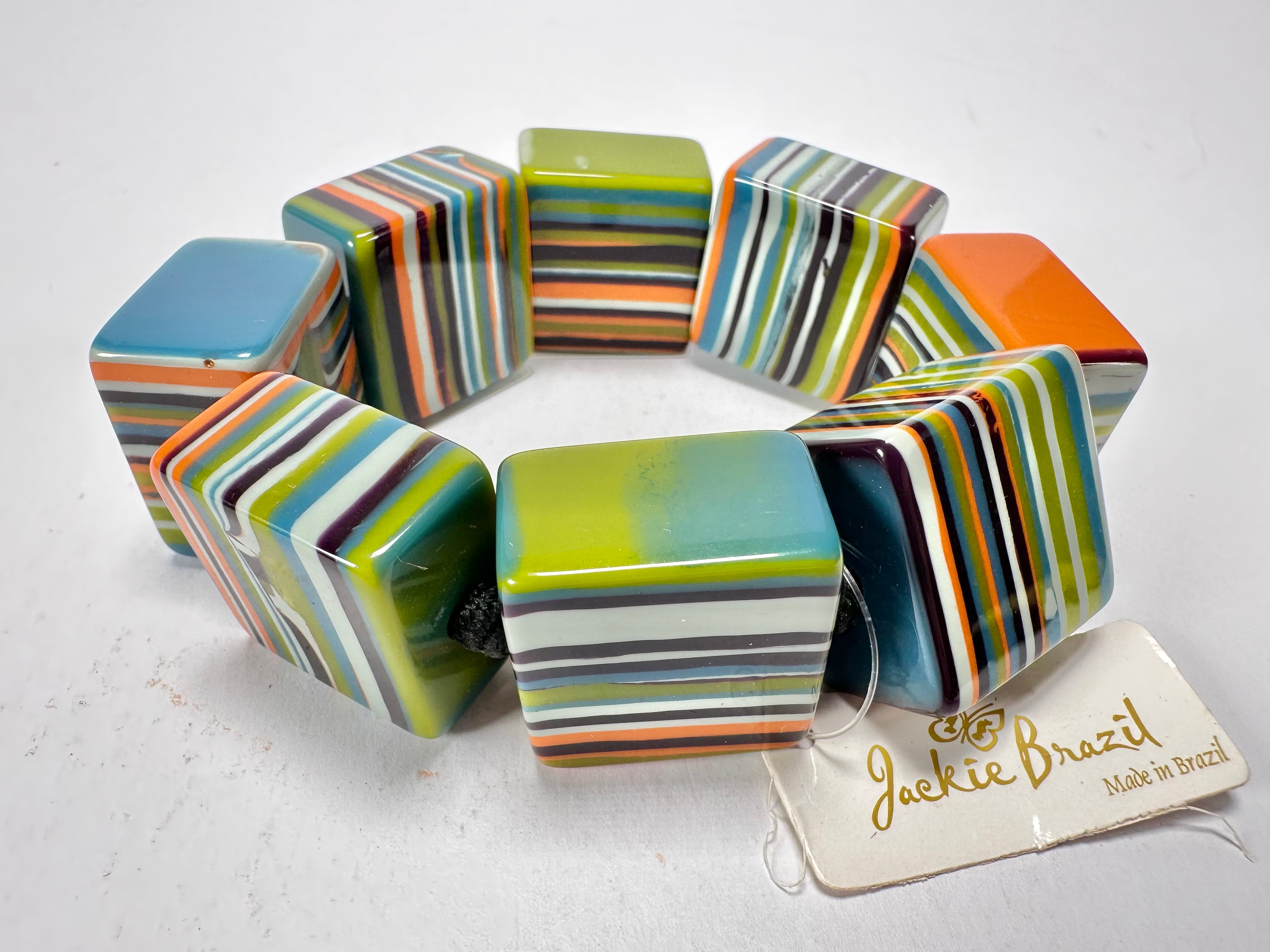 Jackie Brazil "Gala" Liquorice Half Rectangles On Elastic Winter Mix Bracelet ( B0778 )