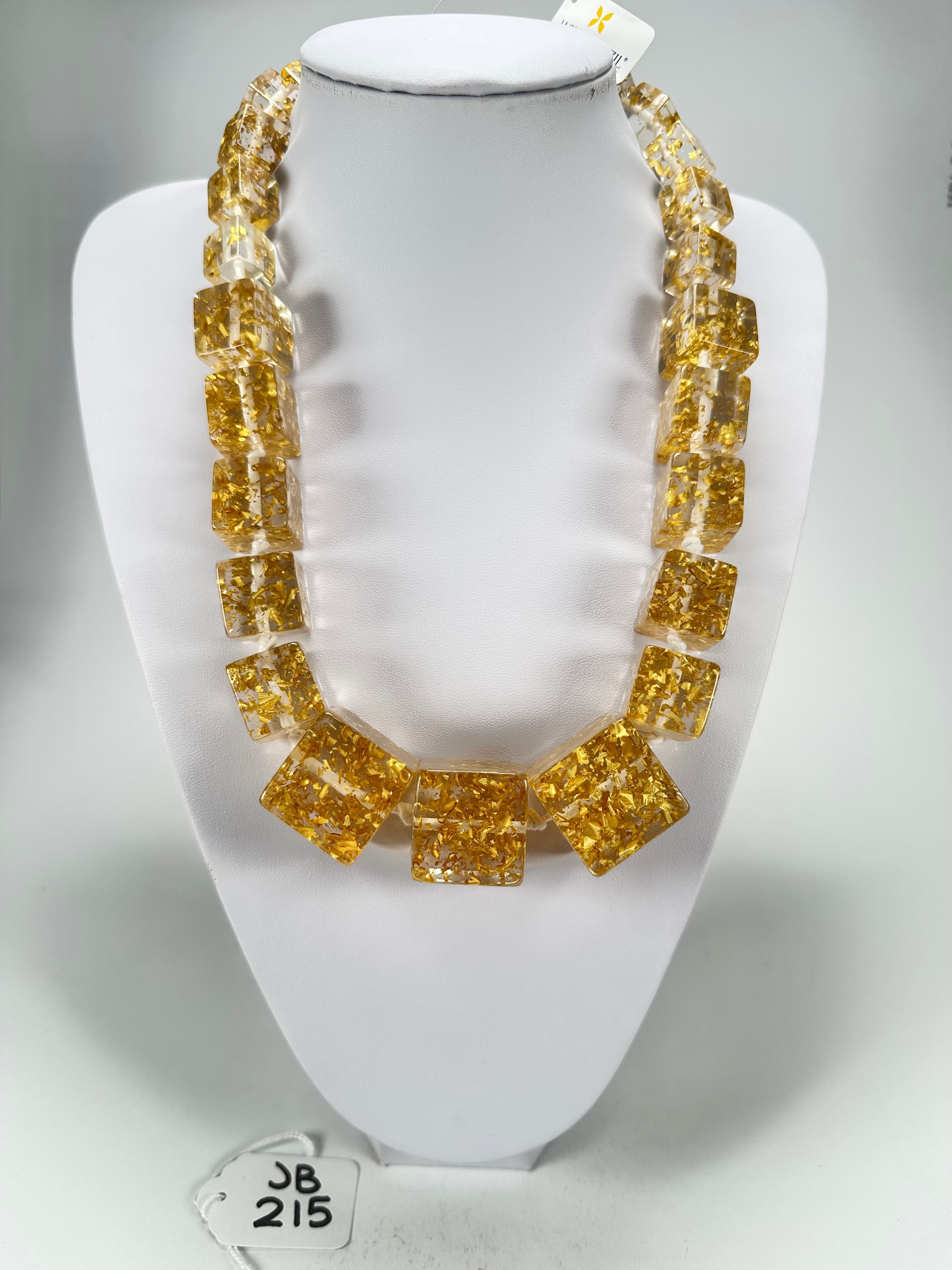 Jackie Brazil "Gold Flakes" Mix Size Liquorice Cubes Resin Necklace ( N3343 )