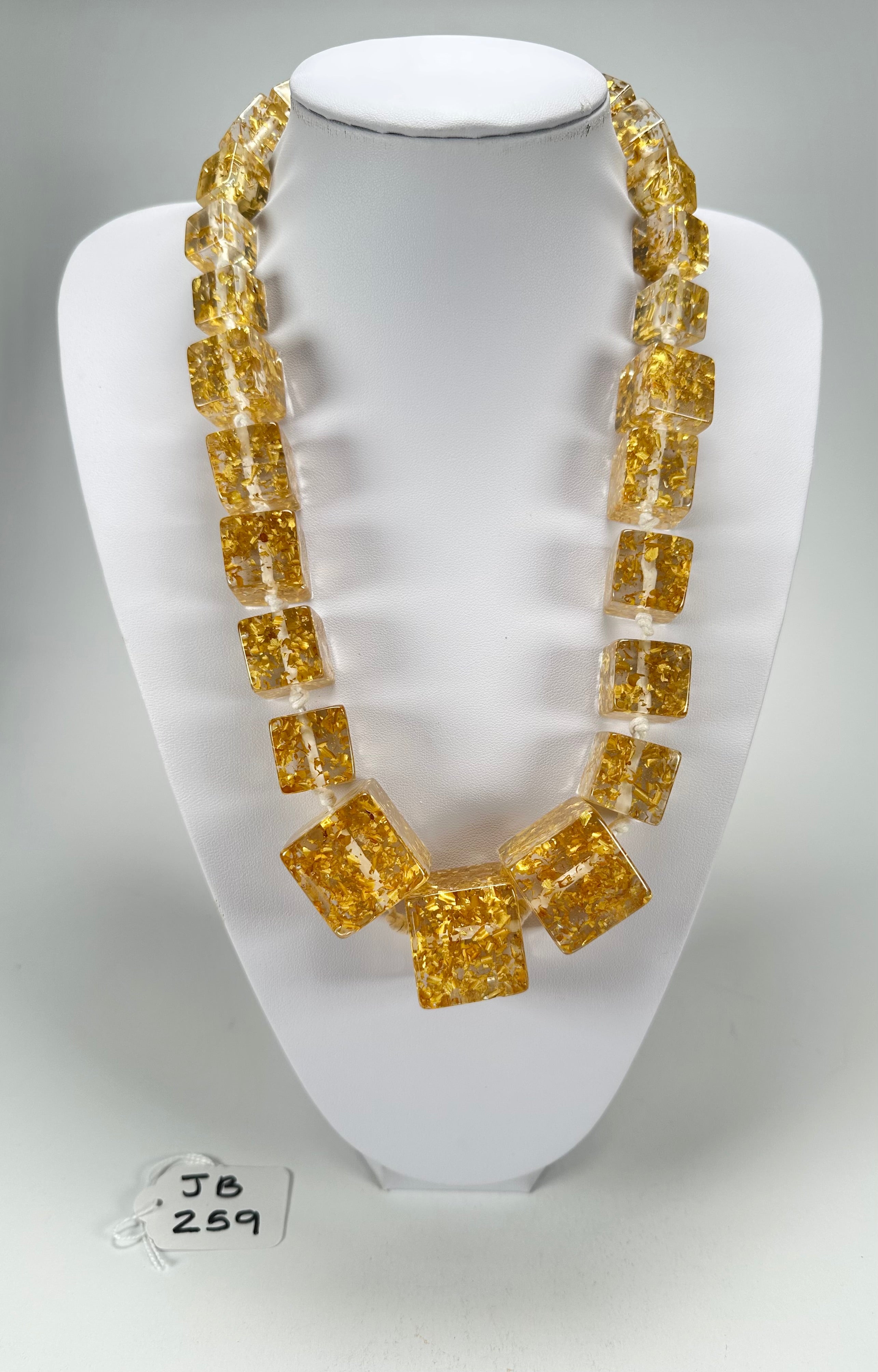 Jackie Brazil "Gold Flakes" Mix Size Liquorice Cubes Resin Necklace ( N3343 )Available in other designs. Brand New with TagsDimensions65cmWeight :