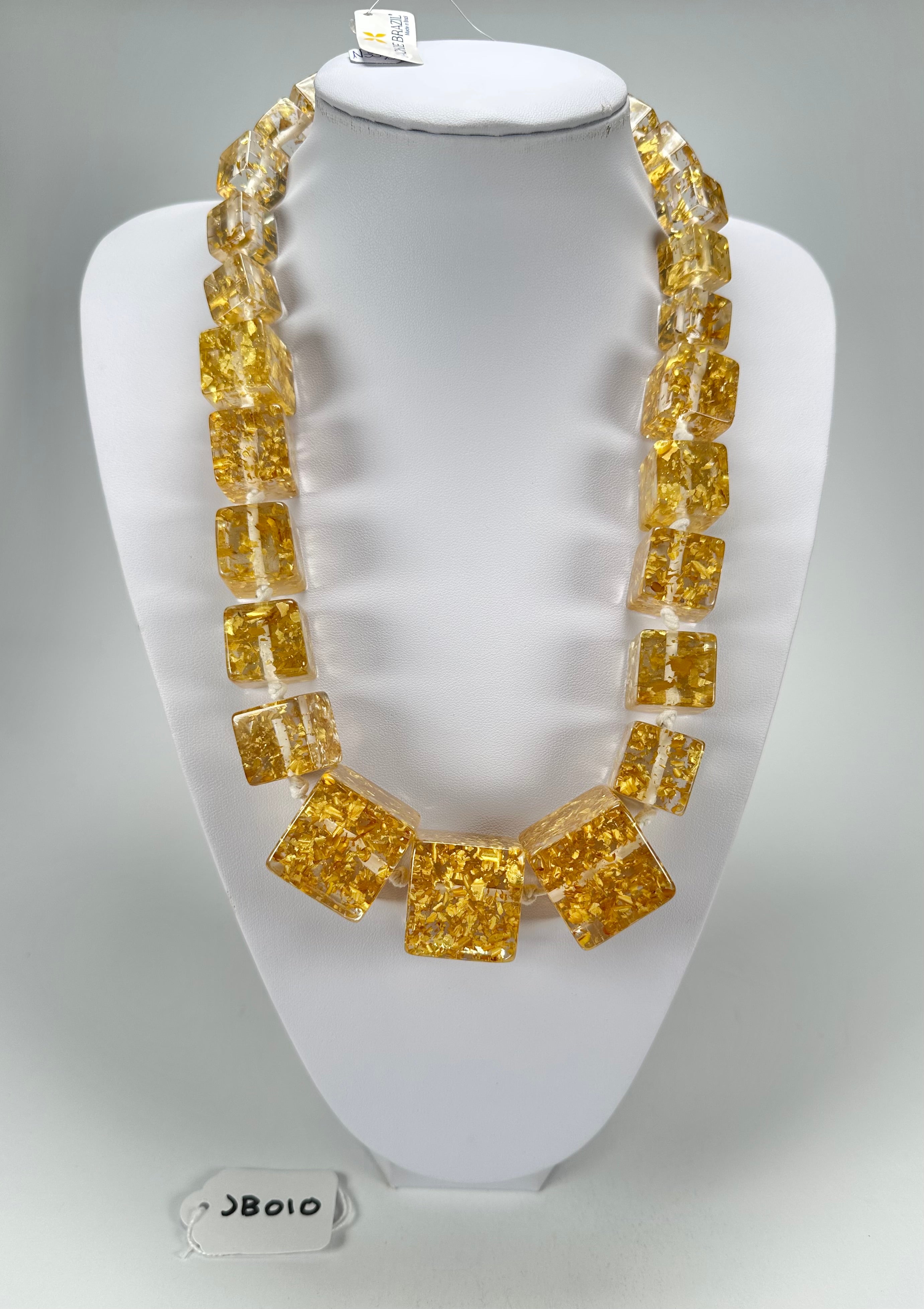 Jackie Brazil "Gold Flakes" Mix Size Liquorice Cubes Resin Necklace ( N3343 )Available in other designs. Brand New with TagsDimensions65cmWeight :