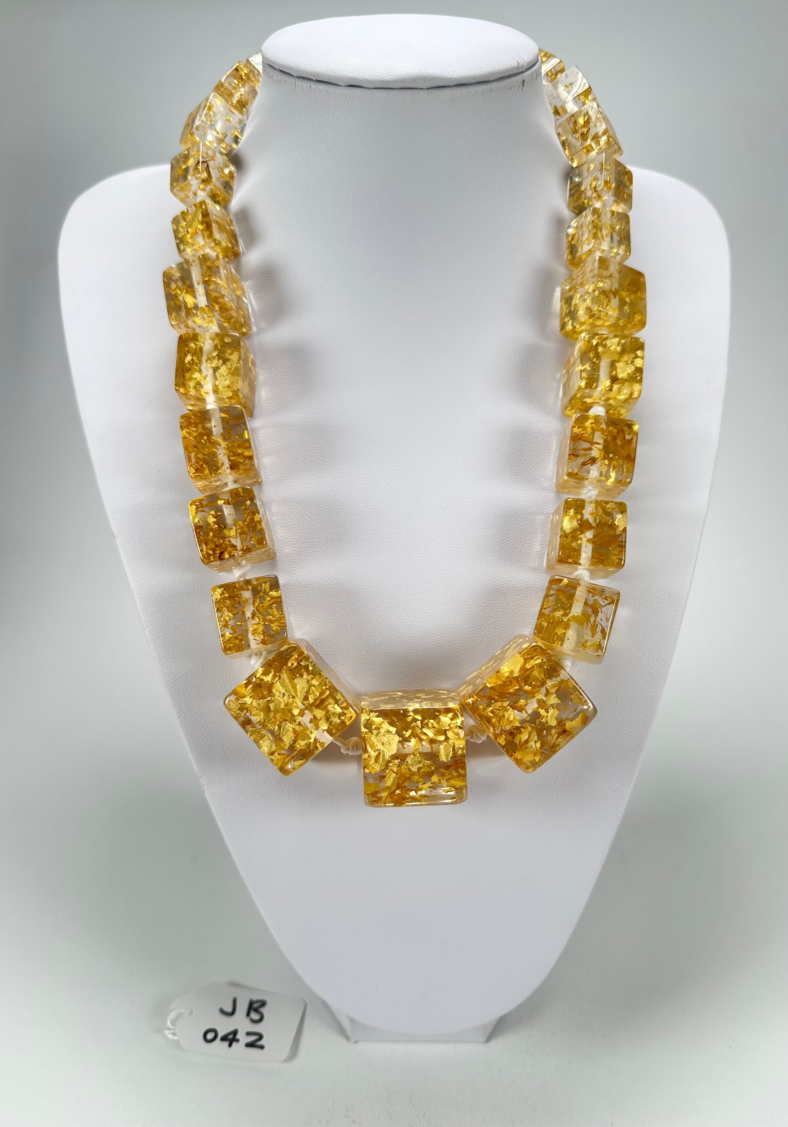 Jackie Brazil "Gold Flakes" Mix Size Liquorice Cubes Resin Necklace ( N3343 )Available in other designs. Brand New with TagsDimensions65cmWeight :