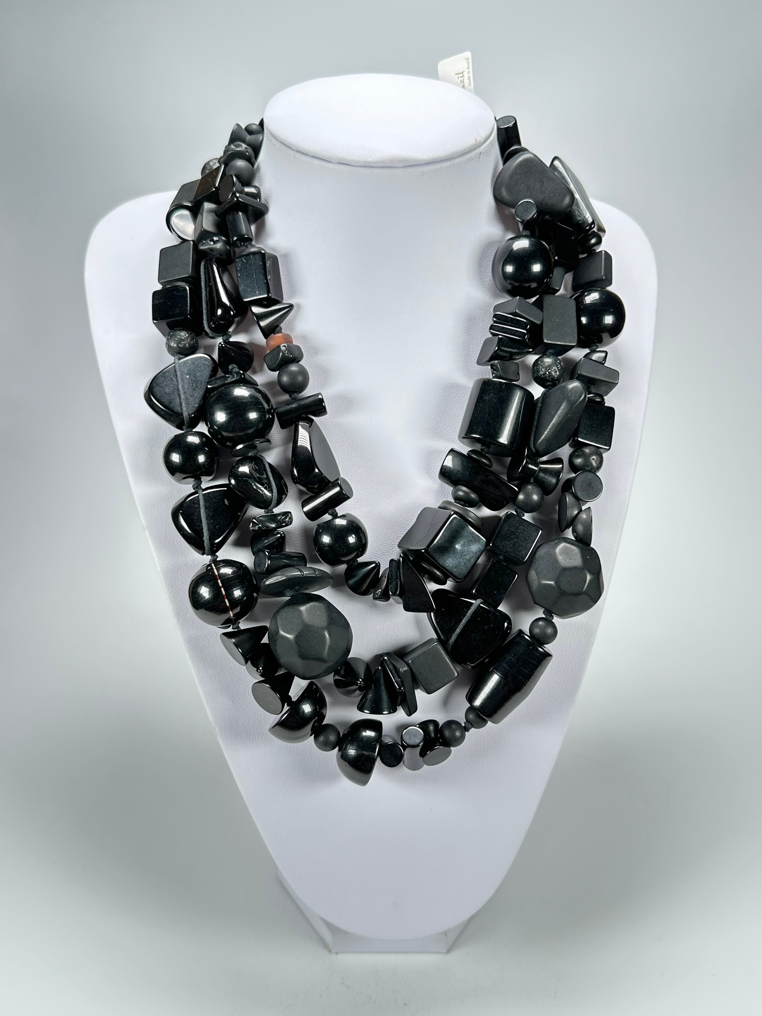 Jackie Brazil "Indiana" 3 Strand Multi-Bead Black Resin Necklace ( N0043 )