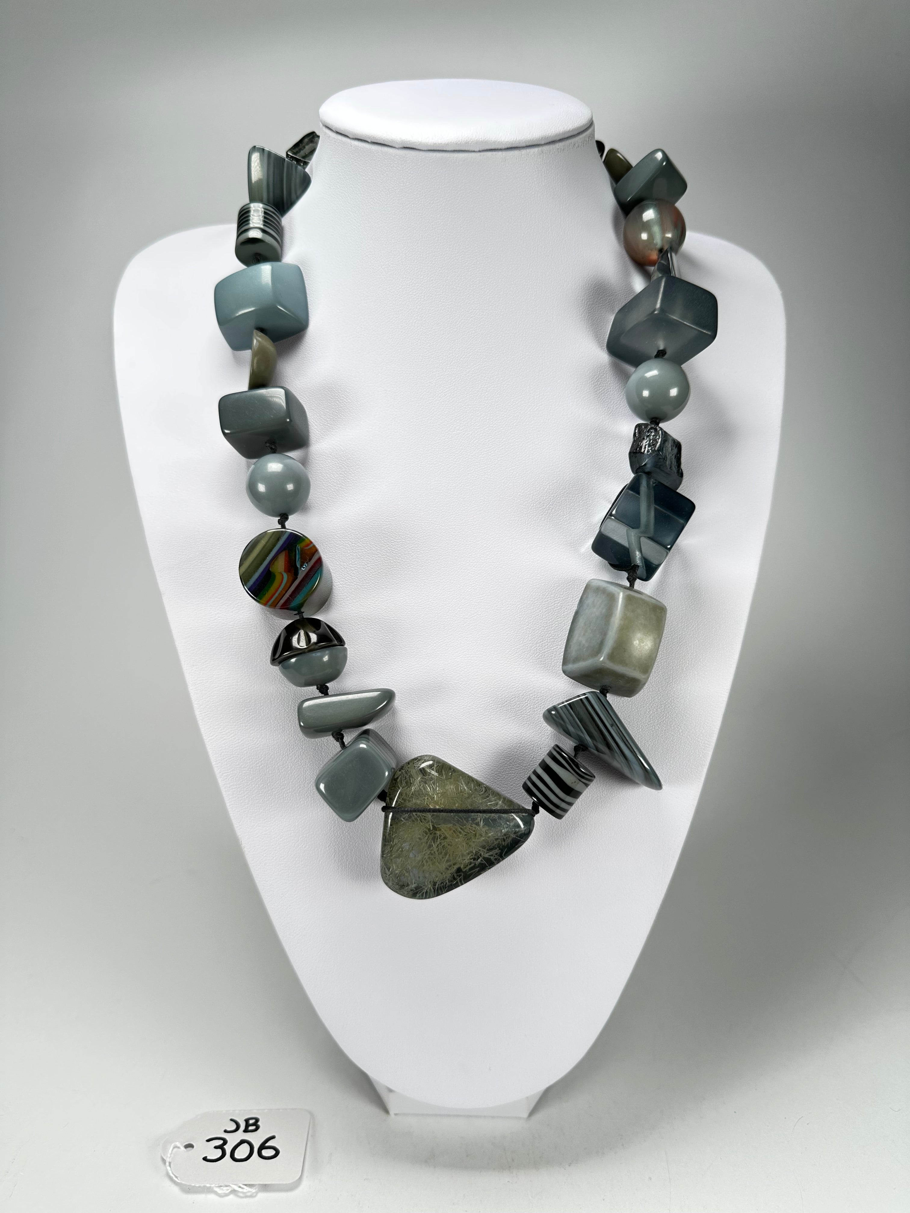 Jackie Brazil "Indiana" Grey Mix Multi-Bead Medium Resin 70cm Necklace ( N0033 )