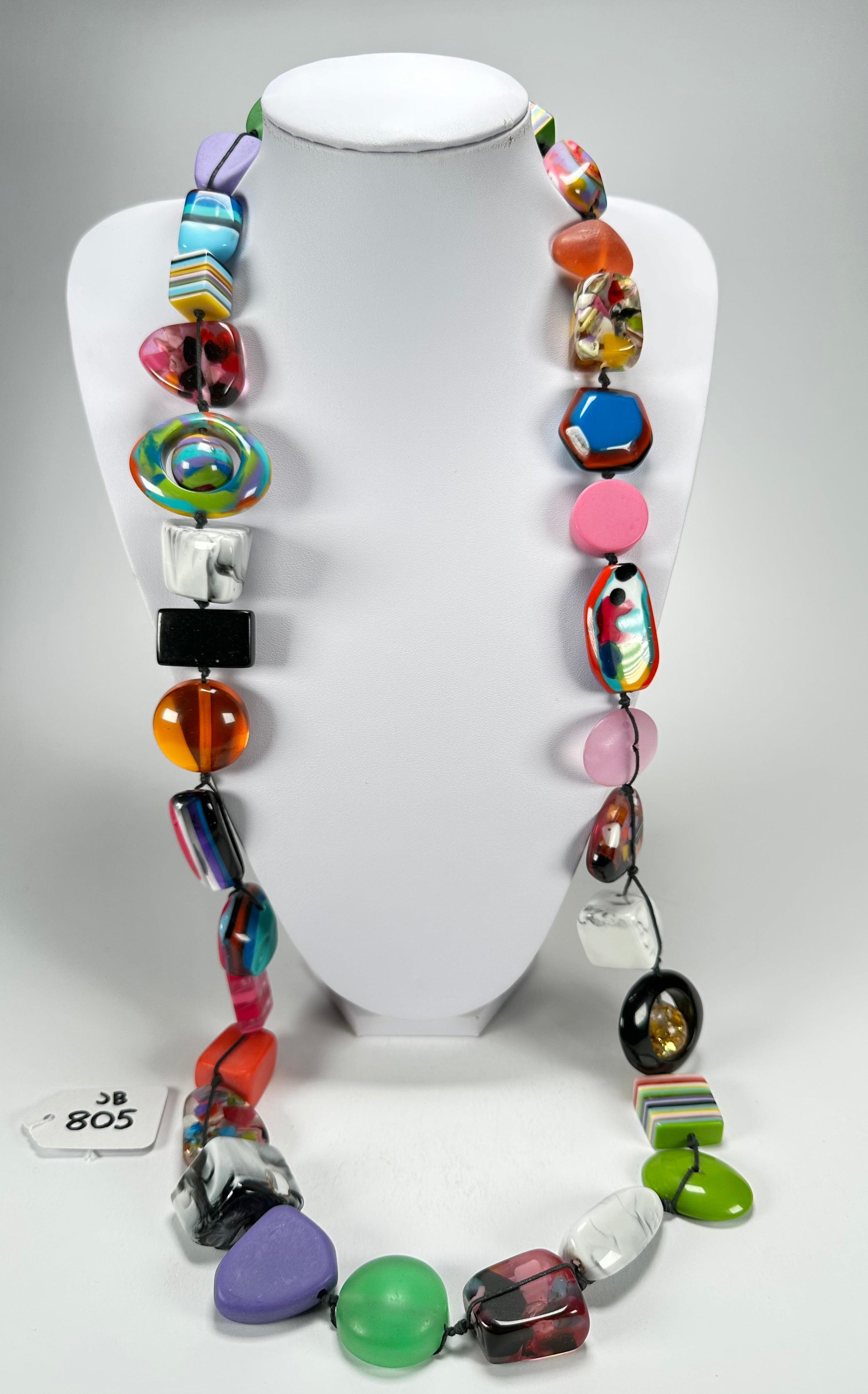 Jackie Brazil "Indiana" Mix Colours Multi-Bead Long Resin 110cm Necklace ( N0038 )