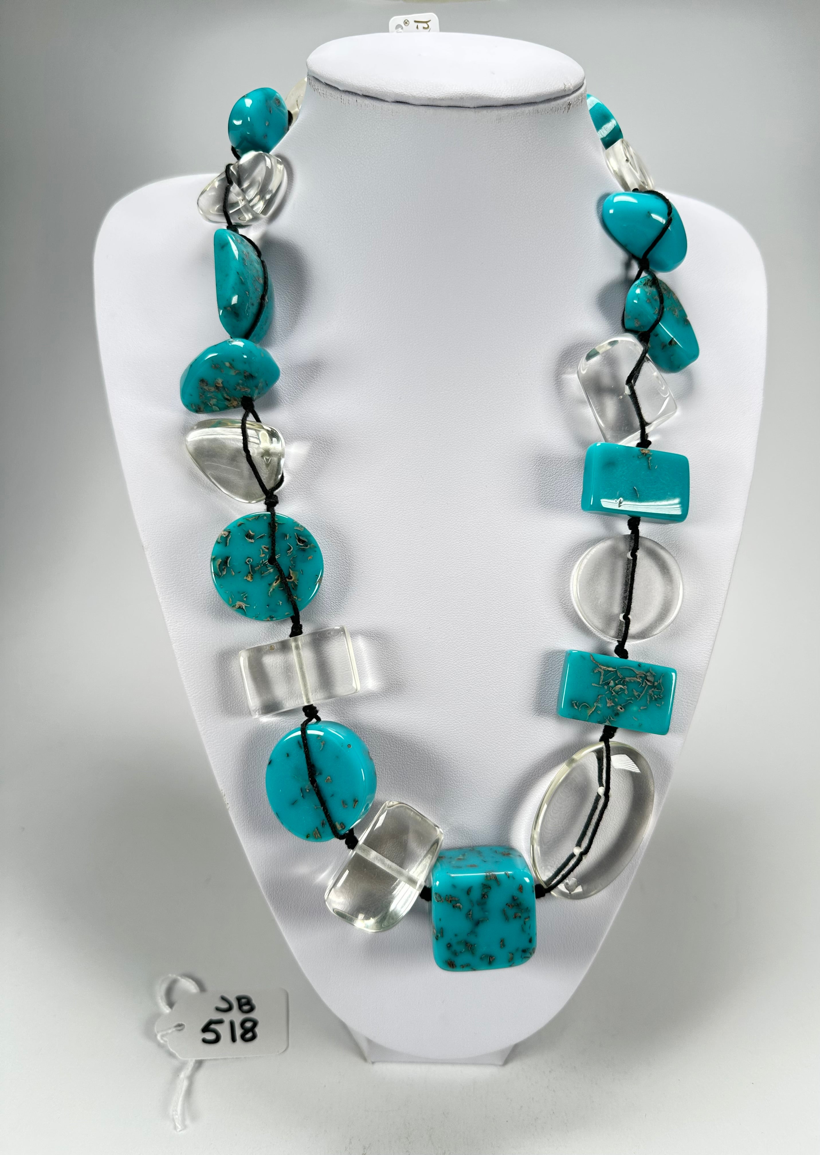 Jackie Brazil "Indiana" Turquoise & Transparent Multi-Bead Medium Resin 70cm Necklace ( N0033 )