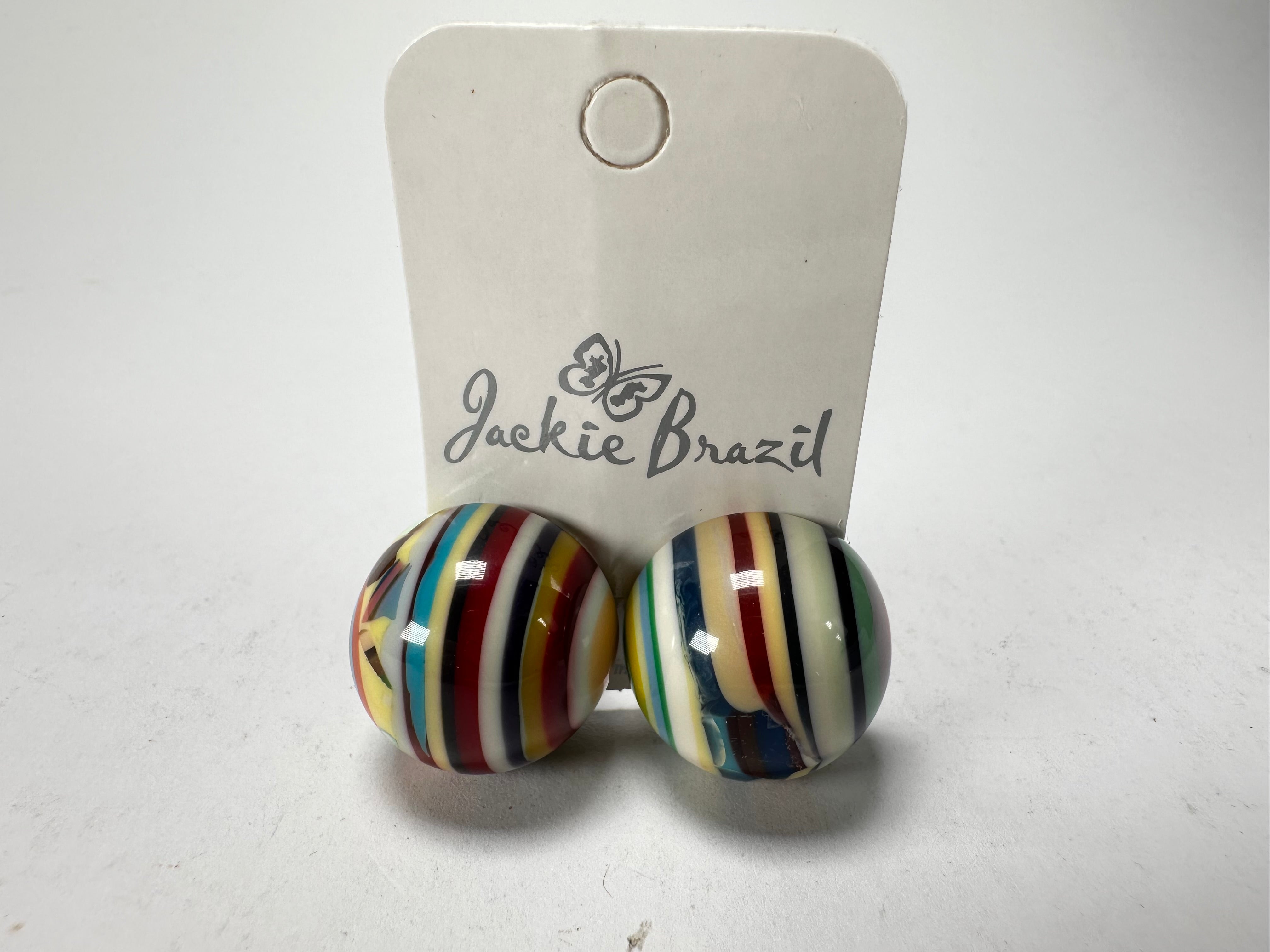 Jackie Brazil "Liquorice Stripes" Round Balls Clip On Resin Earrings ( E1337 )Available in other designs. Brand New with TagsClip On EarringsDimensionsWeight :