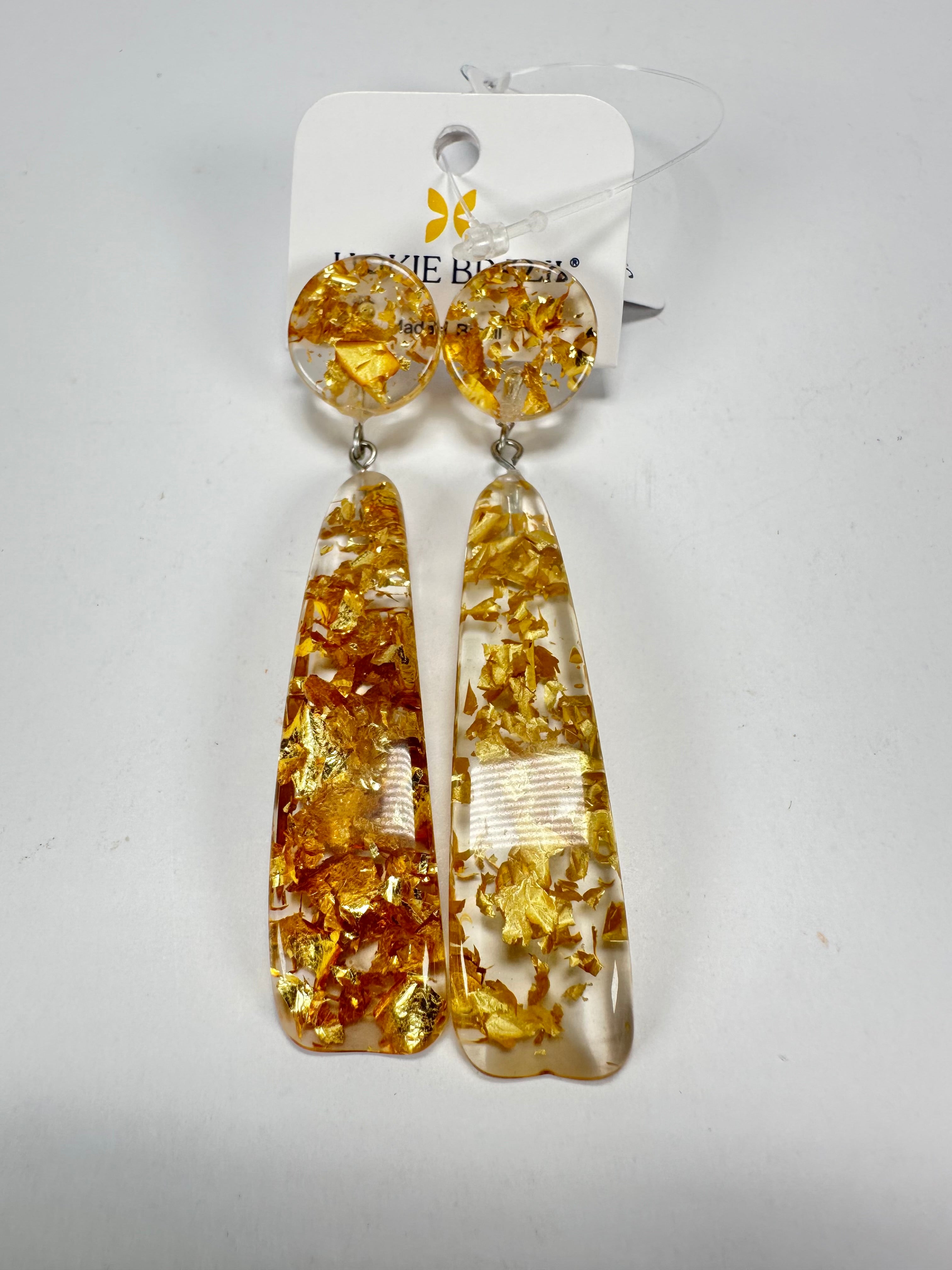 Jackie Brazil "Mel" Gold Flakes Stud & Leaf On Pin Resin Earrings ( E4500 )