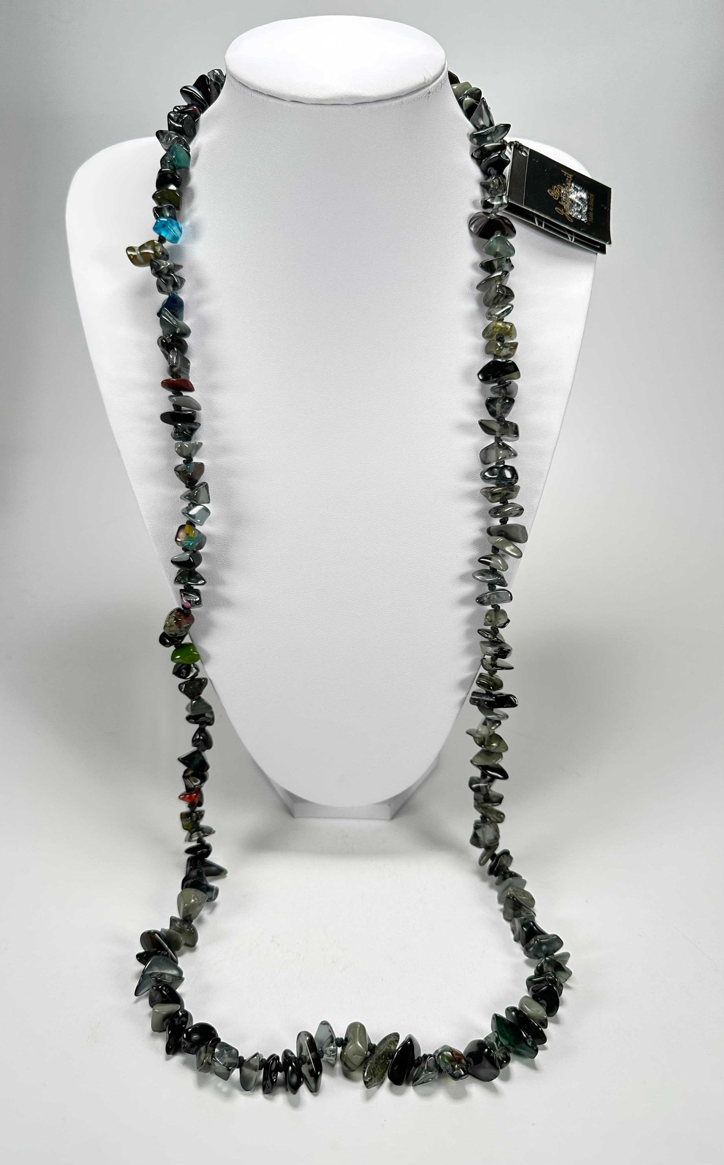 Jackie Brazil "Orient Express" 1 Strand Small Grey Mix Bead Long 110cm Necklace ( N3571 )