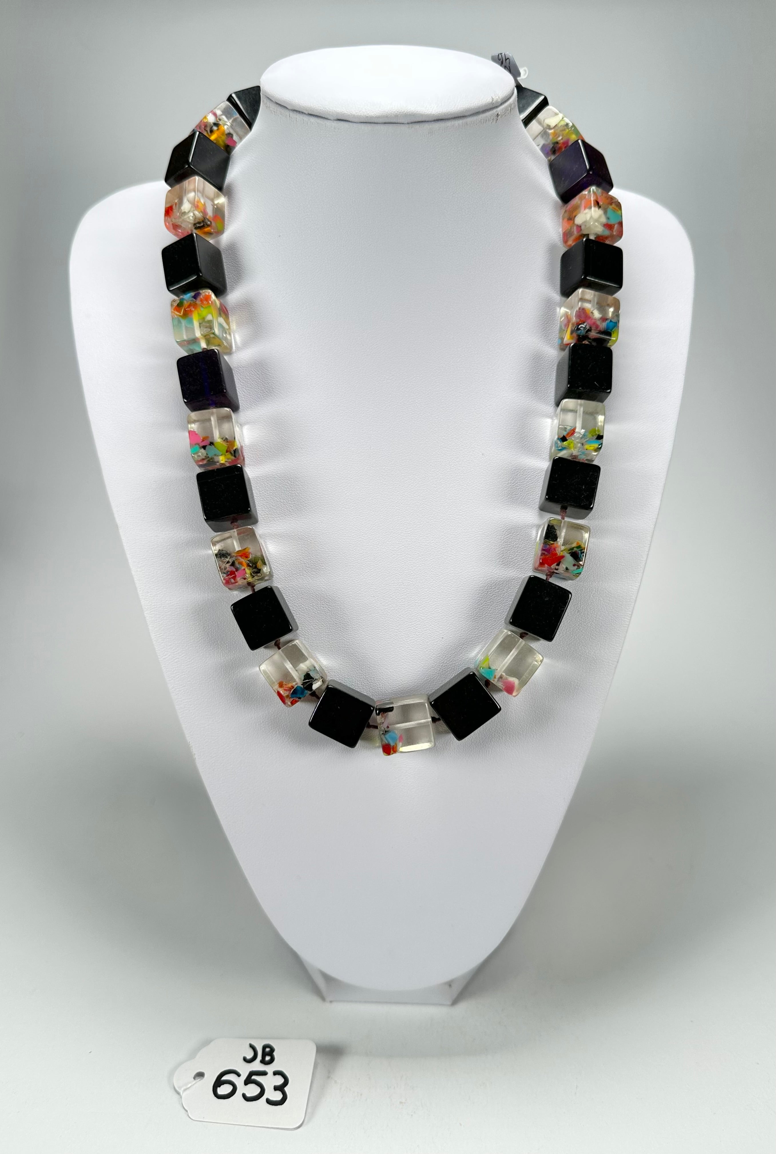 Jackie Brazil "POP" Black & Cascade Liquorice Small Cubes 65cm Necklace ( N0046 )