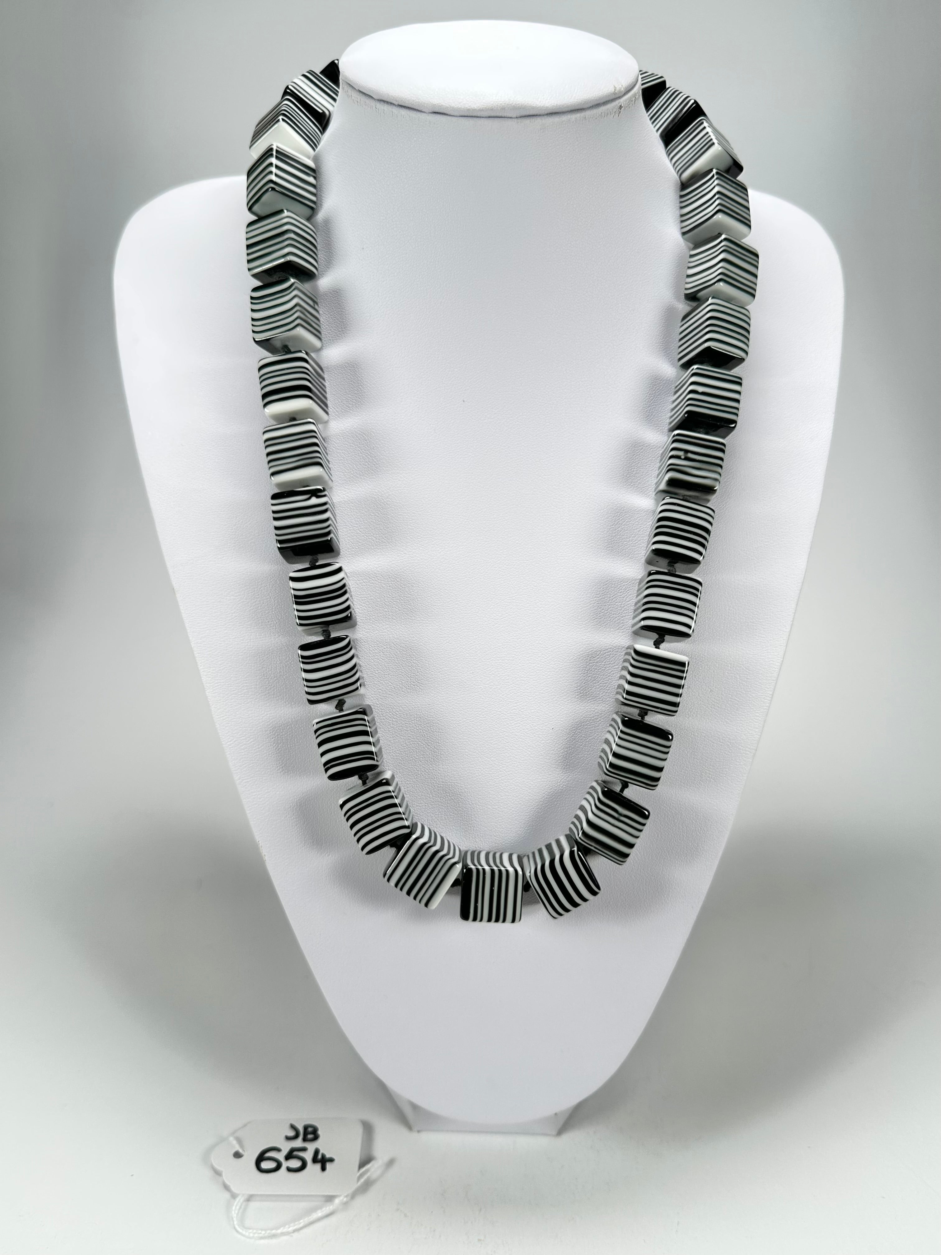 Jackie Brazil "POP" Liquorice Black & White Small Cubes 65cm Necklace ( N0046 )