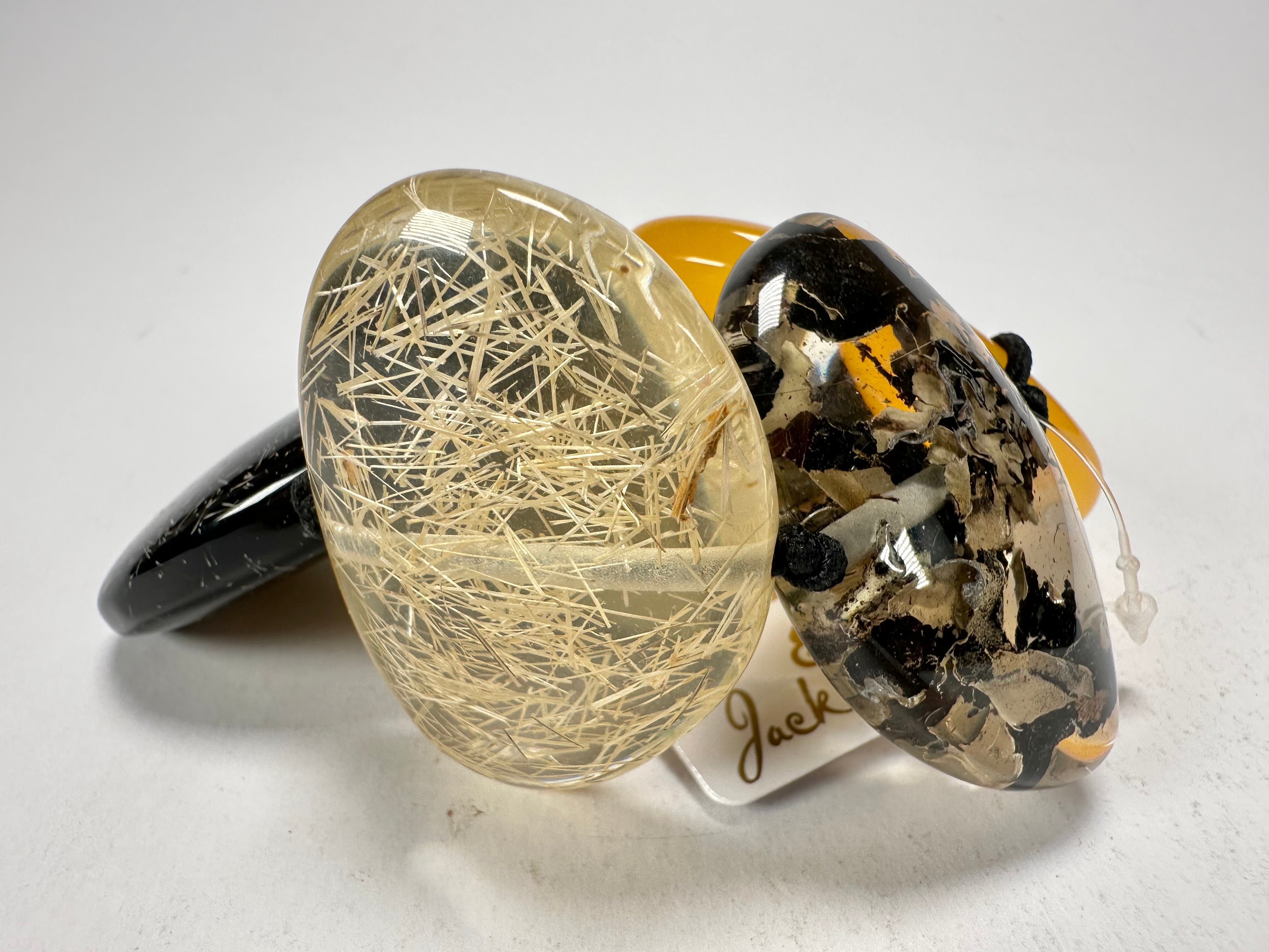 Jackie Brazil "Riverstones" Seasons Mix Stone Large Flat Stones On Elastic Bracelet ( B3716 )