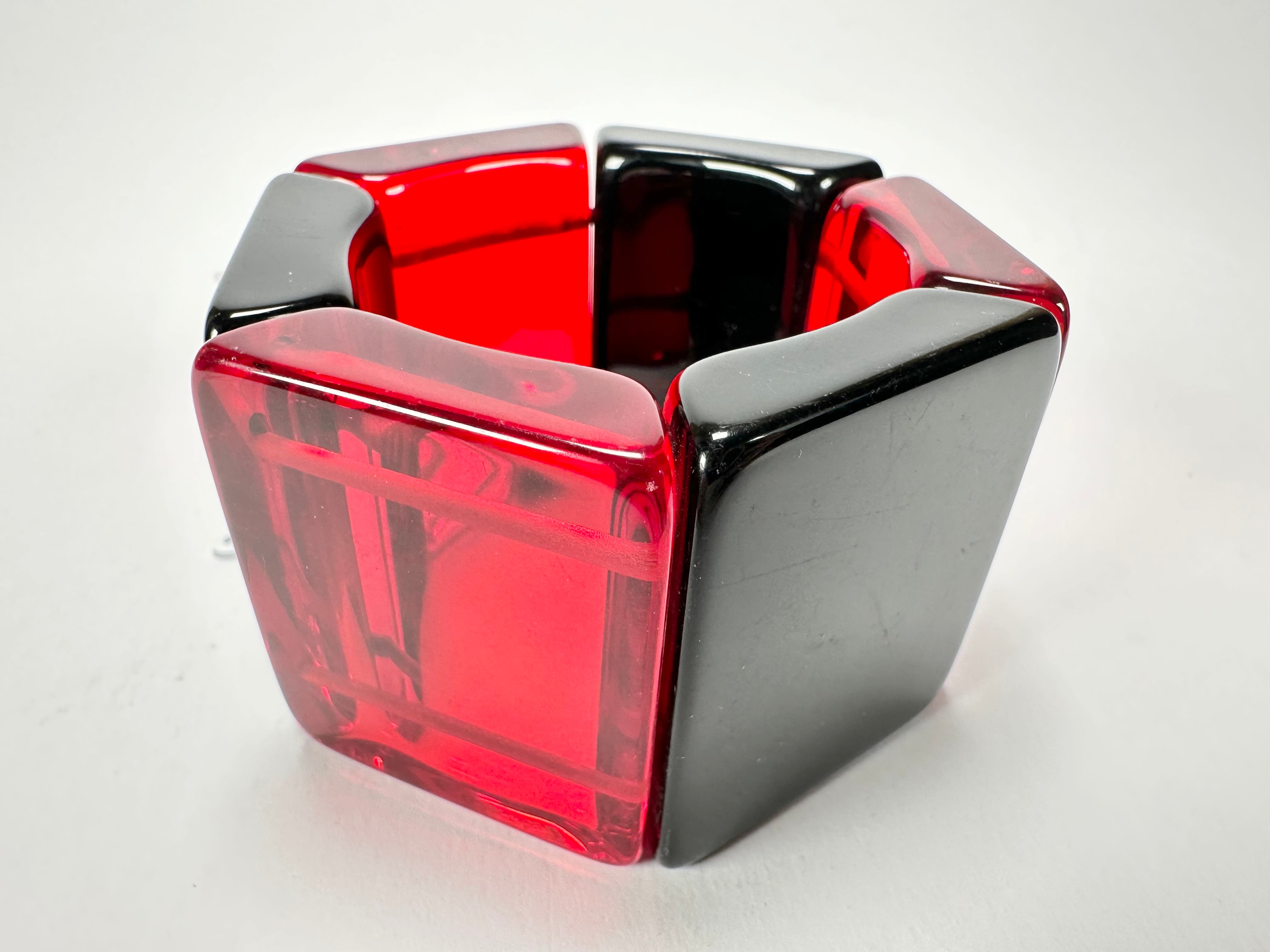 Jackie Brazil "Sabrina" Transparent Red & Black Gloss Elasticated Bracelet ( B0225 )