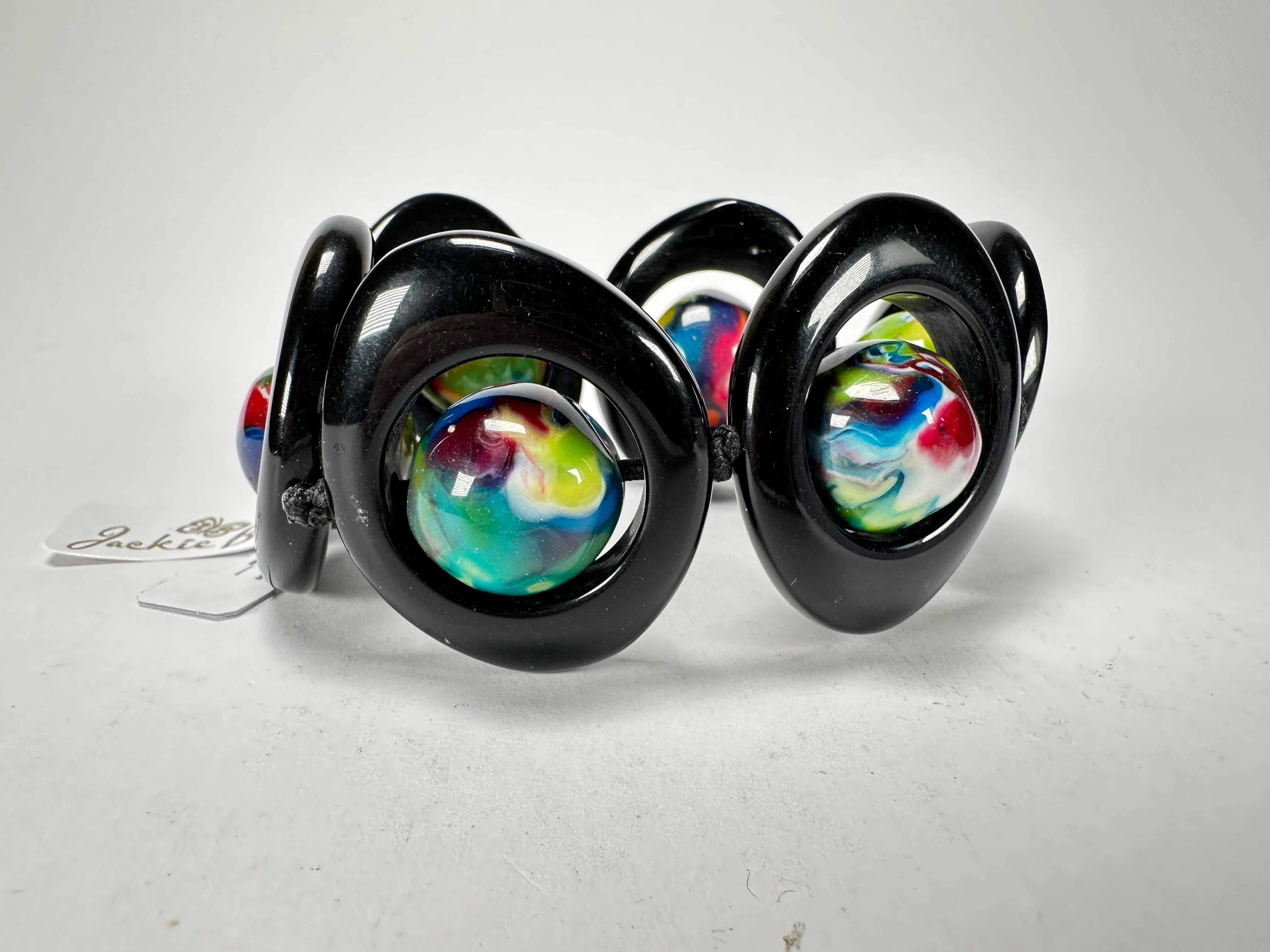 Jackie Brazil "Saturn" Black & Kandinsky Disc & Ball Elastic Bracelet ( B0052 )