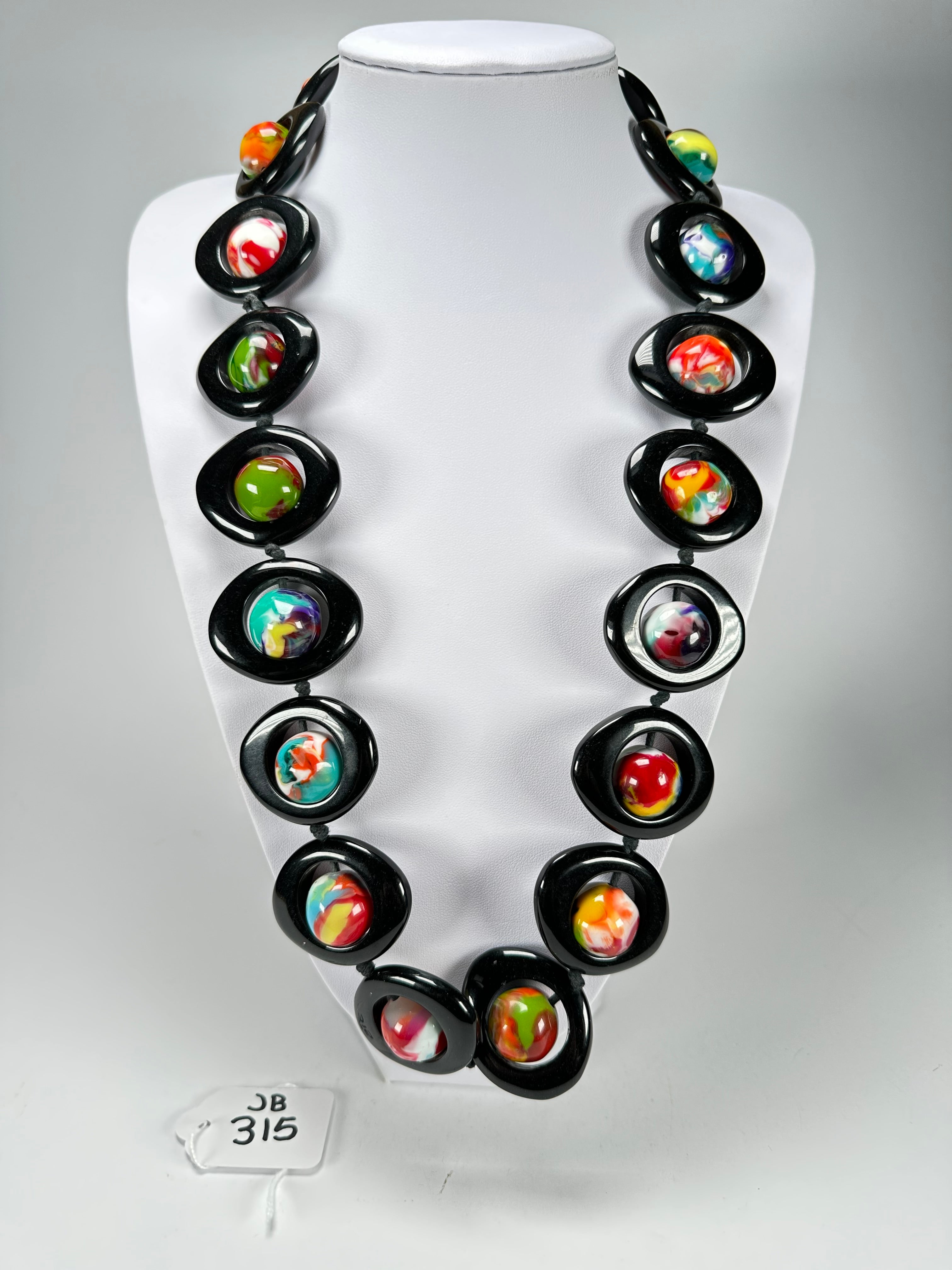 Jackie Brazil "Saturn" Black & Kandinsky Disc & Ball Long 75cm Necklace ( N0052 )