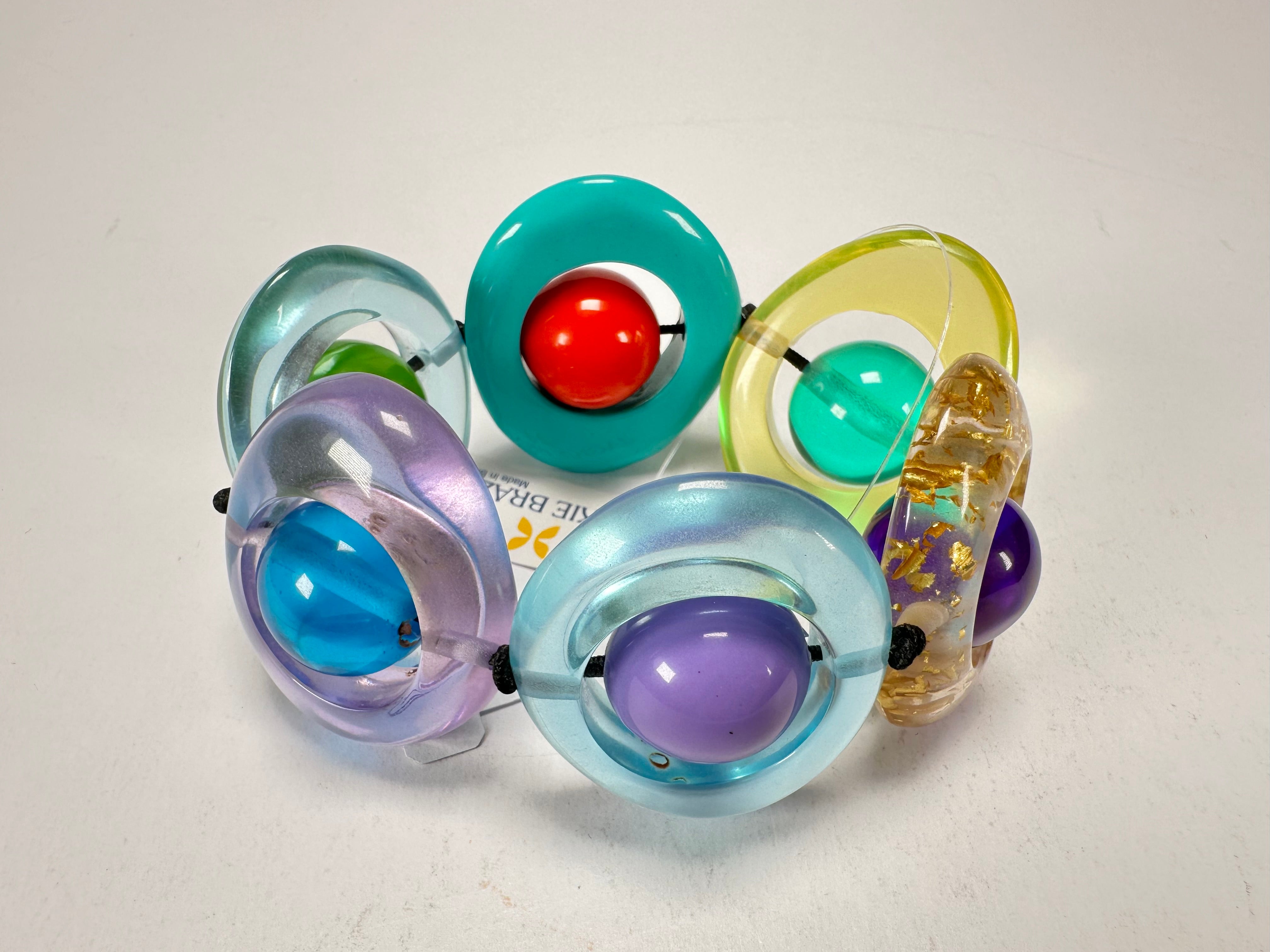 Jackie Brazil "Saturn" Transparent Paris Mix Disc & Ball Elastic Bracelet ( B0052 )