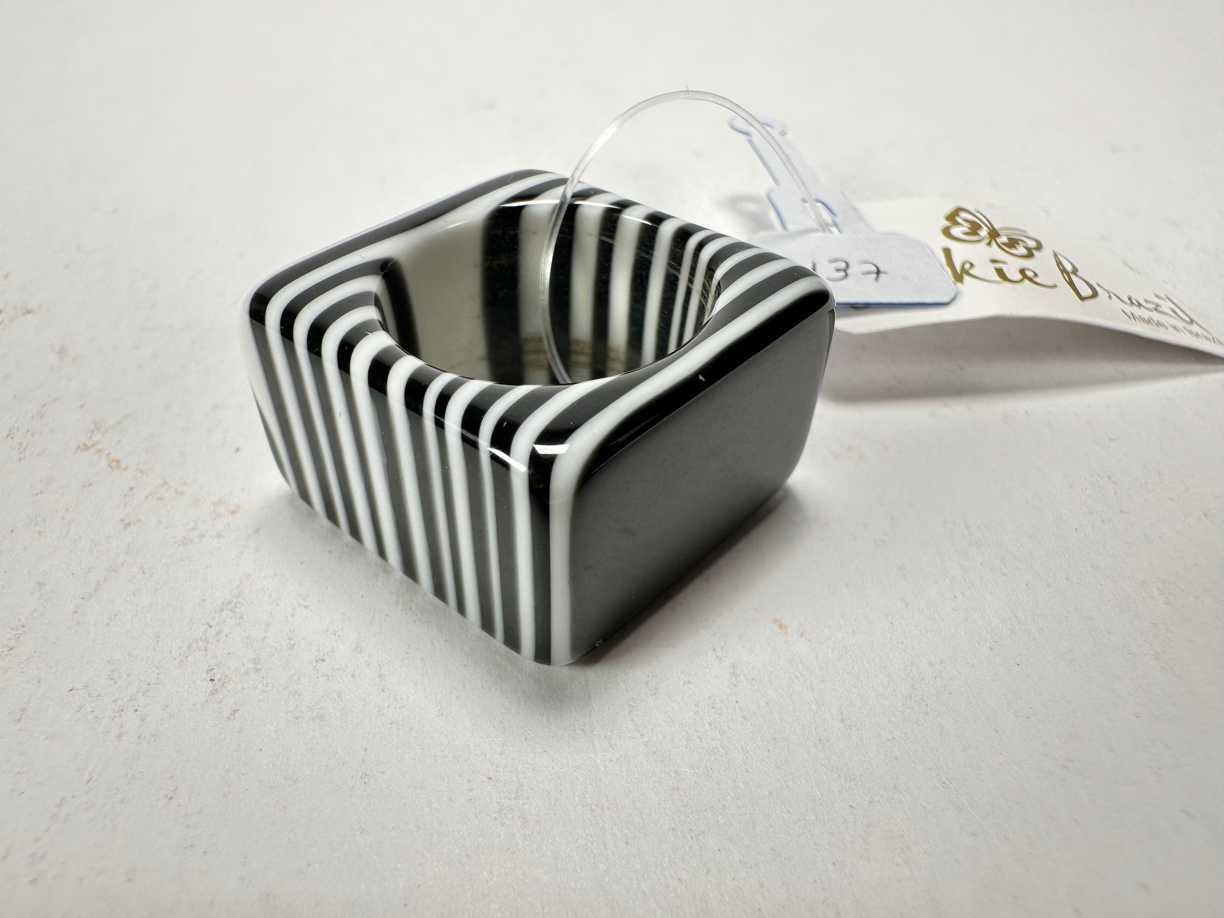 Jackie Brazil "Tiger Stripe" Pop Liquorice Black & White Striped Square Resin Ring ( R1983 ) Size UK O / USA 7