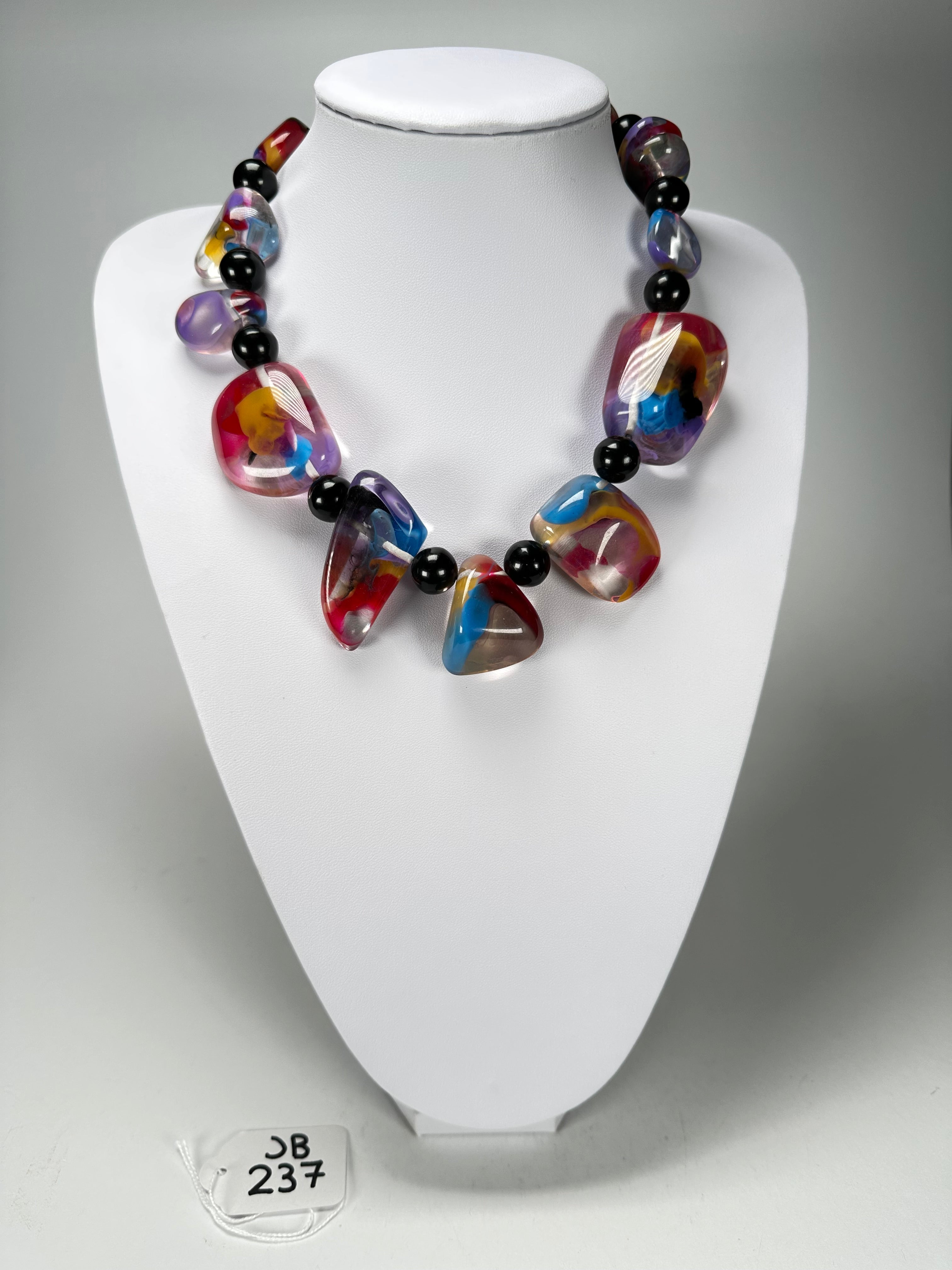 Jackie Brazil "Vesubio" Purple Marble Large Beads & Stones Necklace ( N1616 )