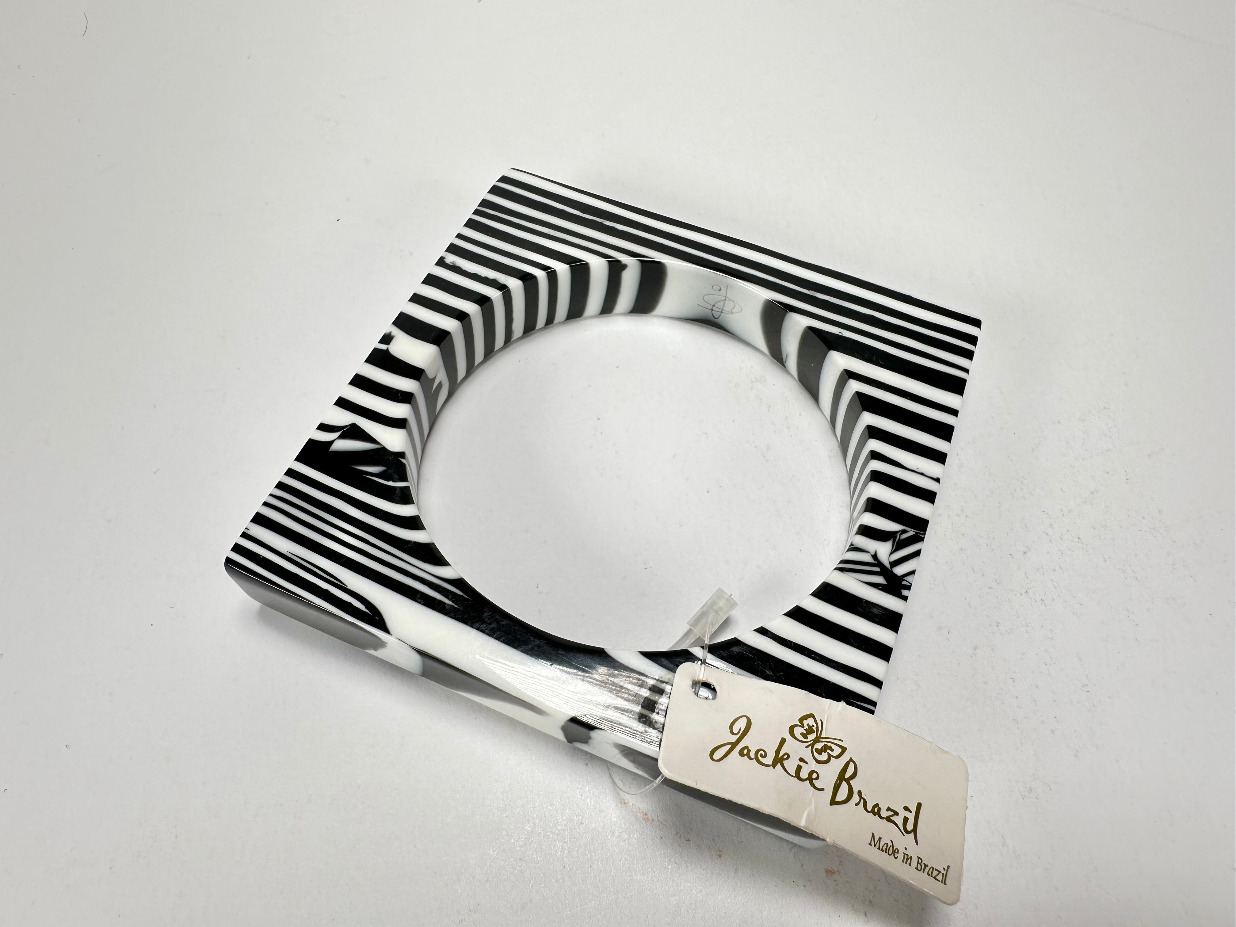 Jackie Brazil "Zebra" Liquorice Allsorts Black & White Striped 1.3cm Square Resin Bangle ( B2142 )