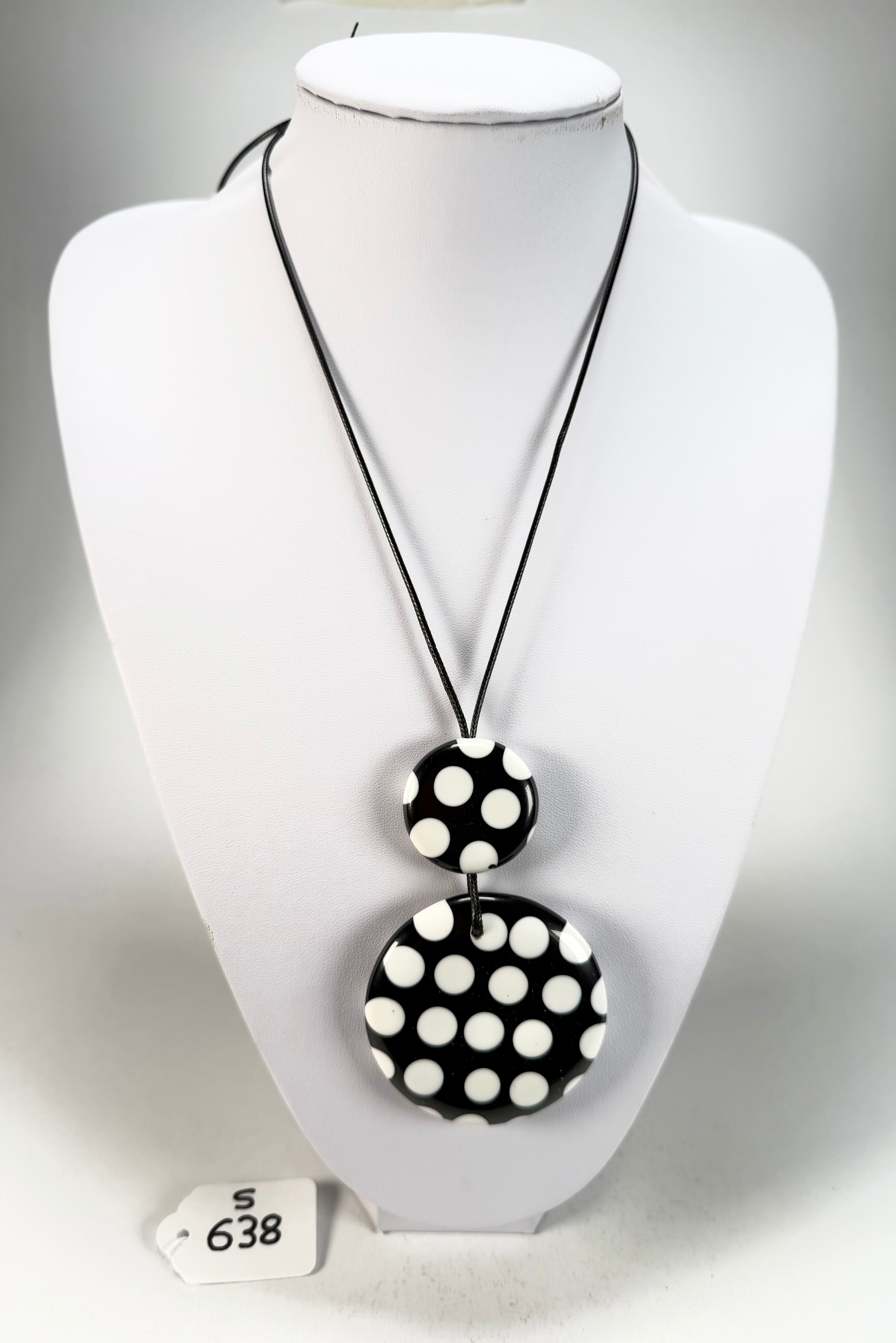 Sobral - Dots "Nº F" Black & White Pendant Resin Necklace ( 005357 )