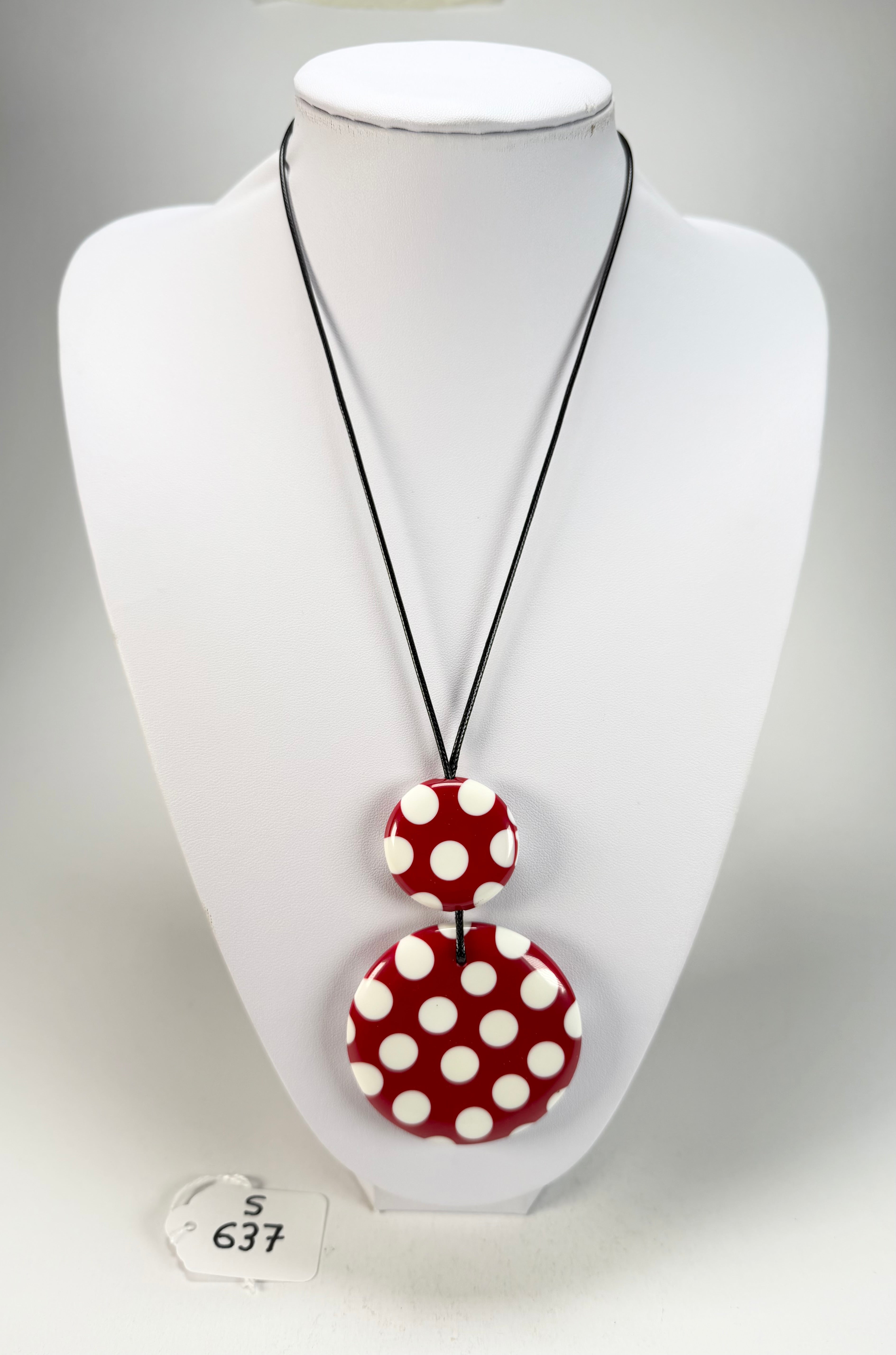 Sobral - Dots "Nº F" Red & White Pendant Resin Necklace ( 005357 )