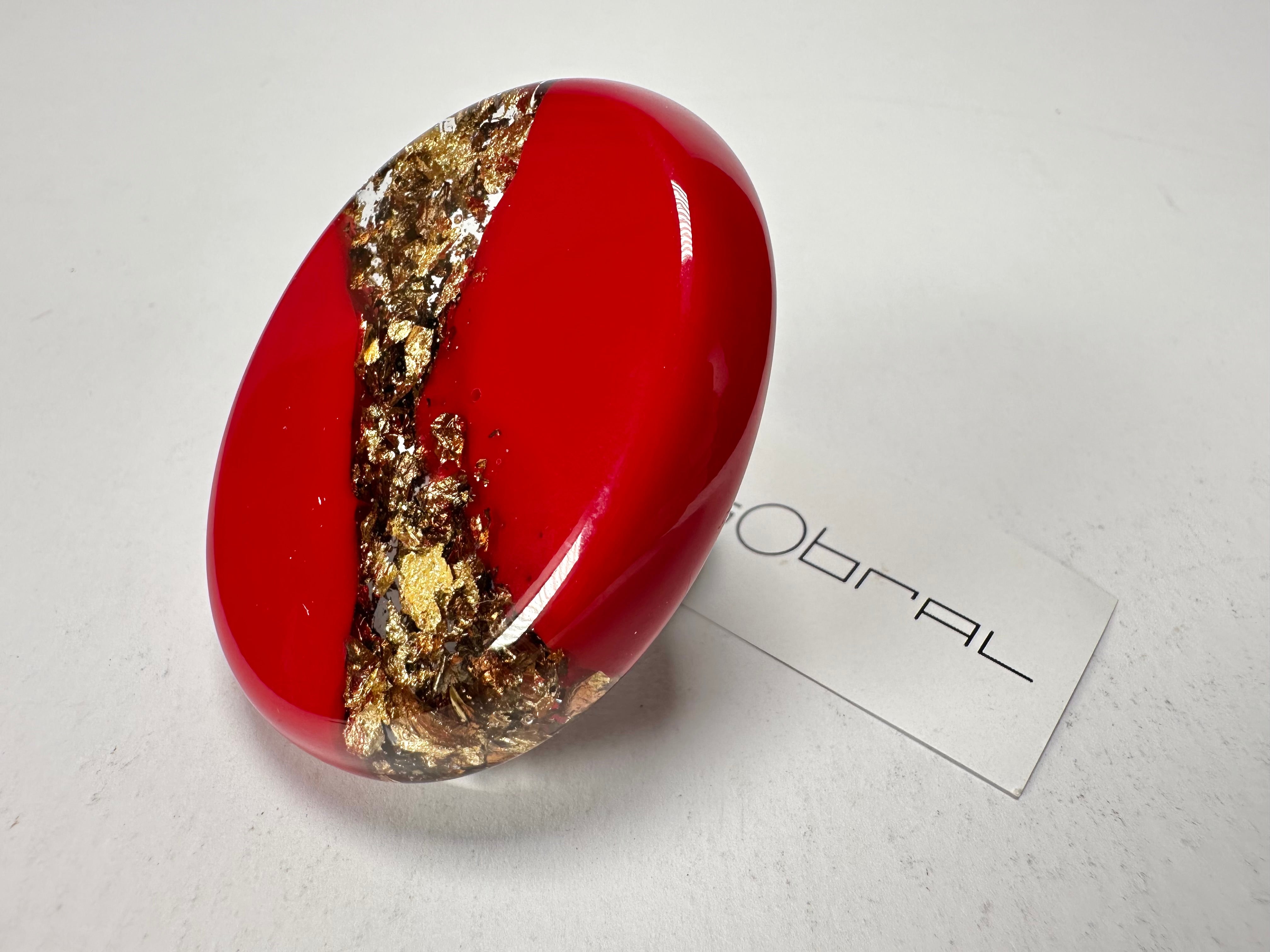 Sobral - Metalique "Munique" Orlando Red Resin Ring ( 005145 )Size - UK : QUSA :  8Sobral : 18All Sobral pieces are different from one another: each effect is produced randomly, making them EXCLUSIVE. We take great time and effort to photo each item to ensure you recieve the exact one...