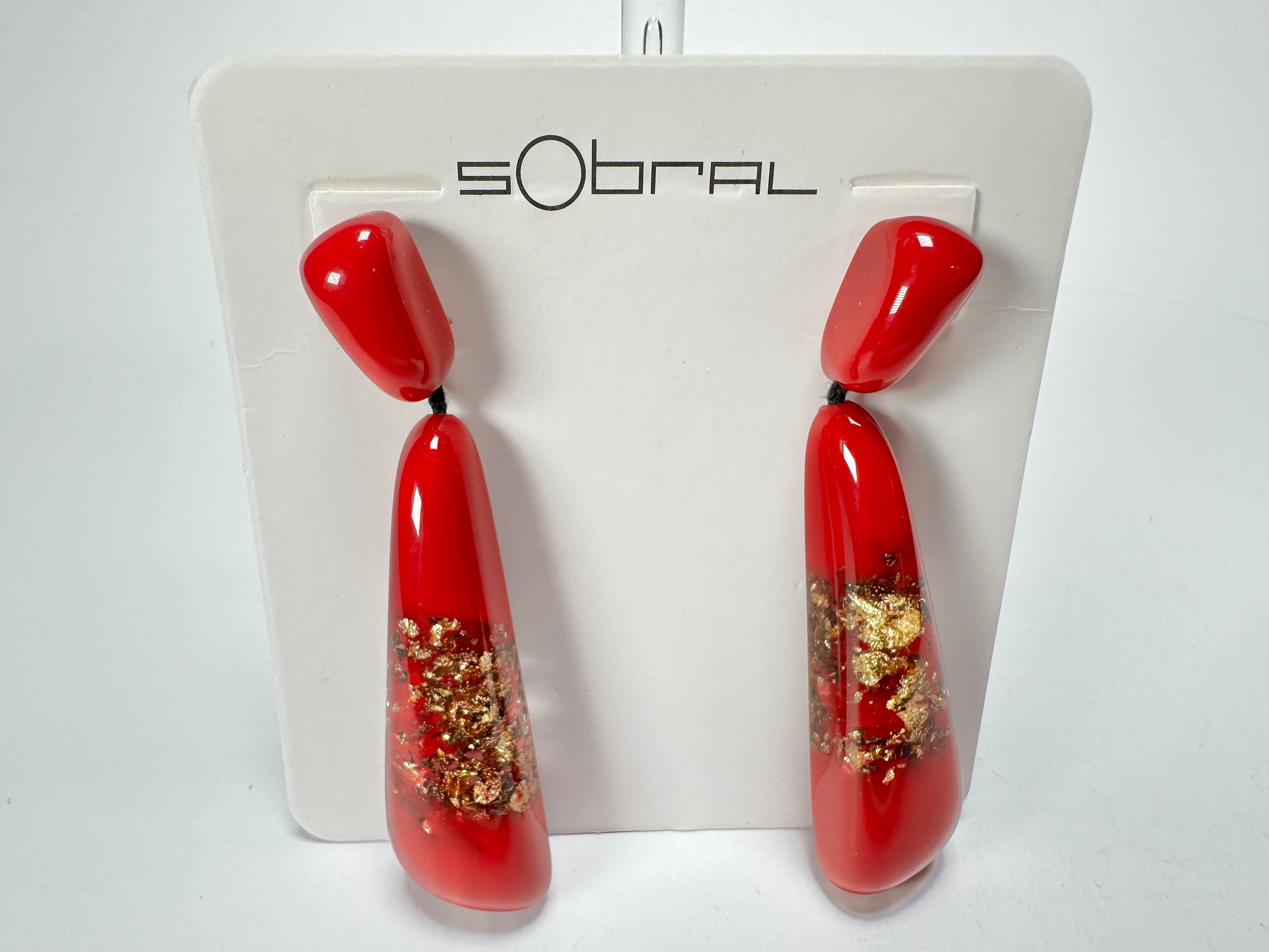 Sobral - Metalique Orlando "Gleine" Red & Gold Resin Earrings ( 004502 )