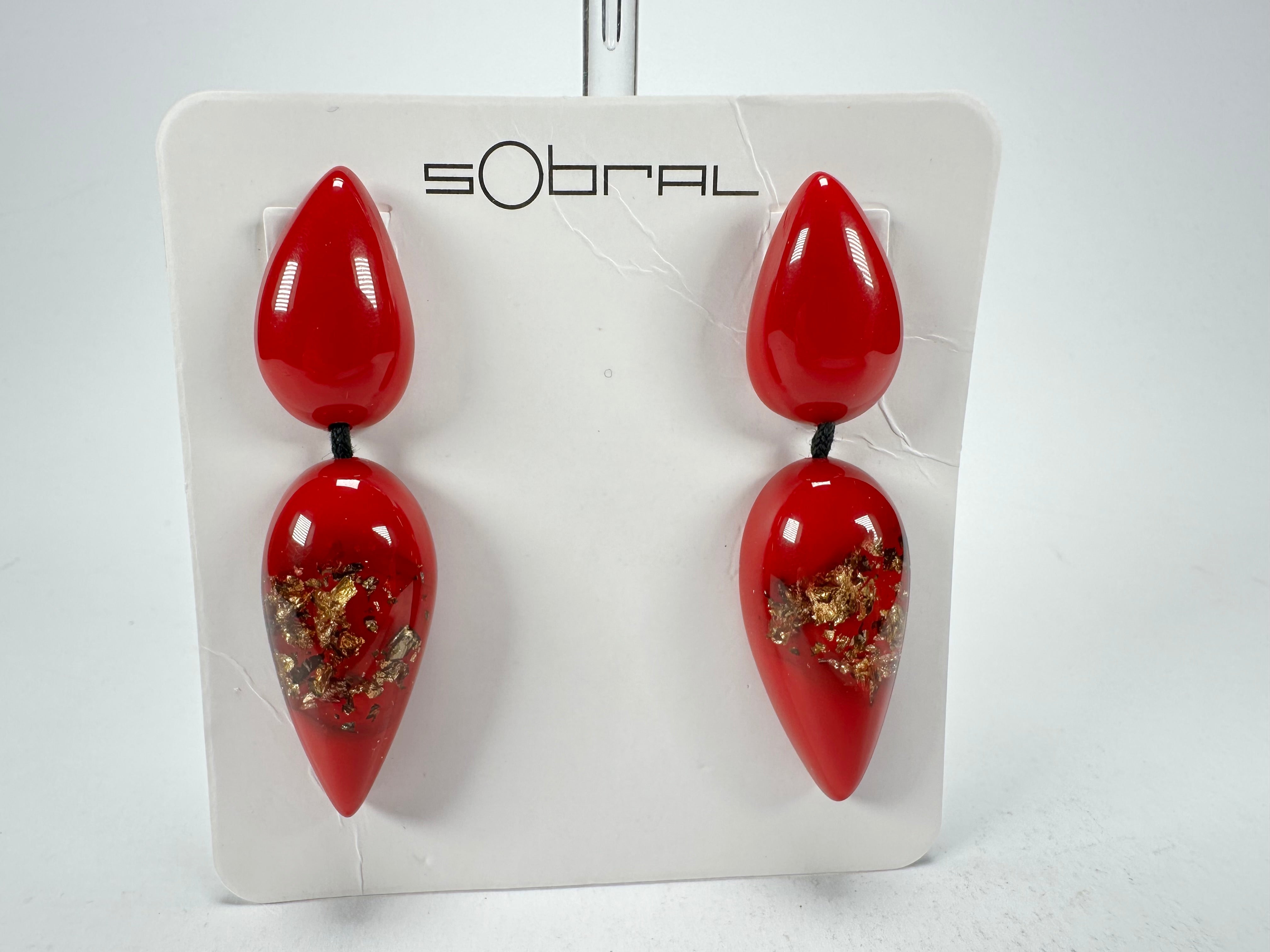 Sobral - Metalique Orlando "Water" Red Resin Earrings ( 004158 )