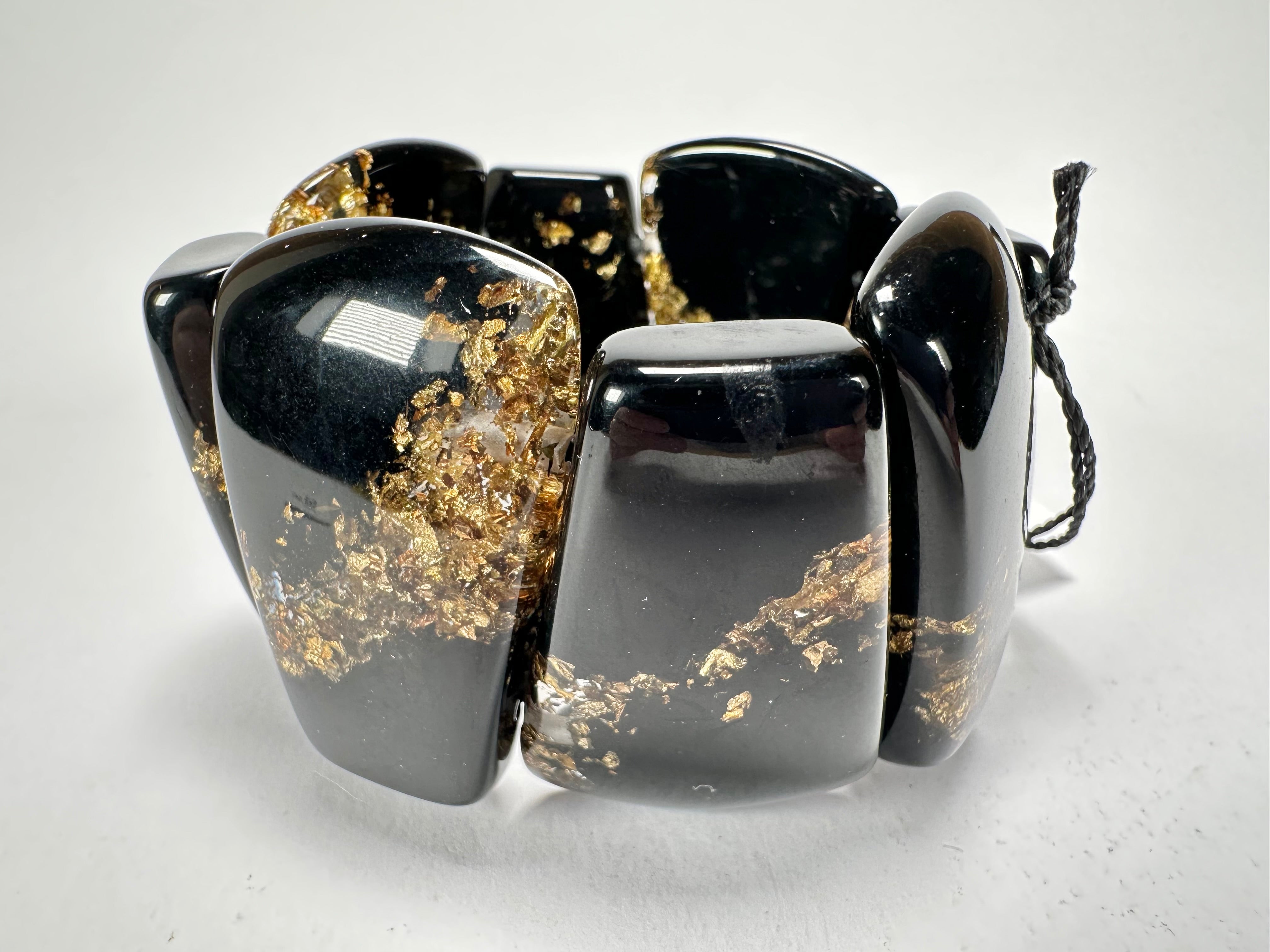Sobral - Metalique "Rimla" Black & Gold Elasticated Resin Bracelet ( 004498 )