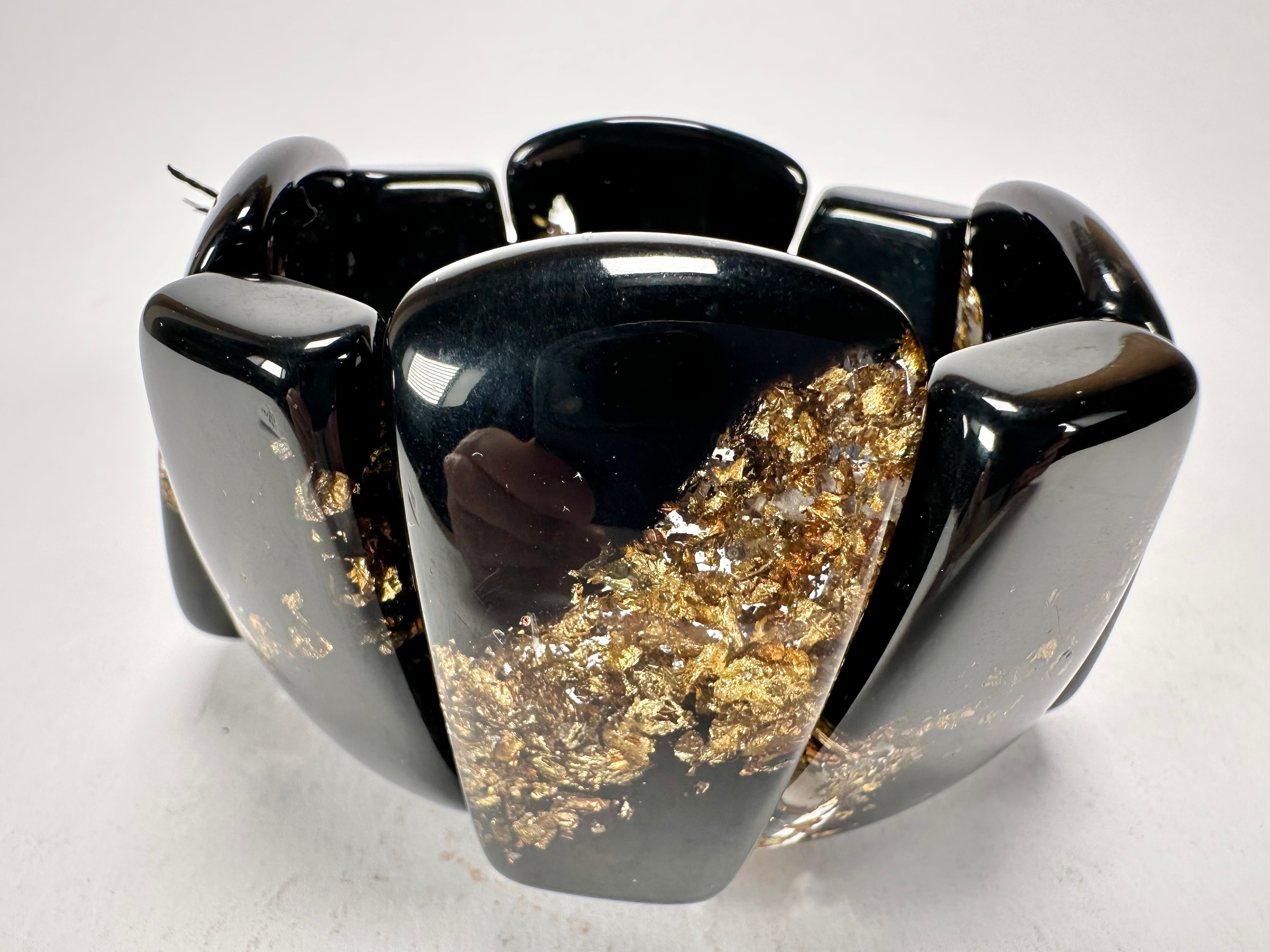 Sobral - Metalique "Rimla" Black & Gold Elasticated Resin Bracelet ( 004498 )
