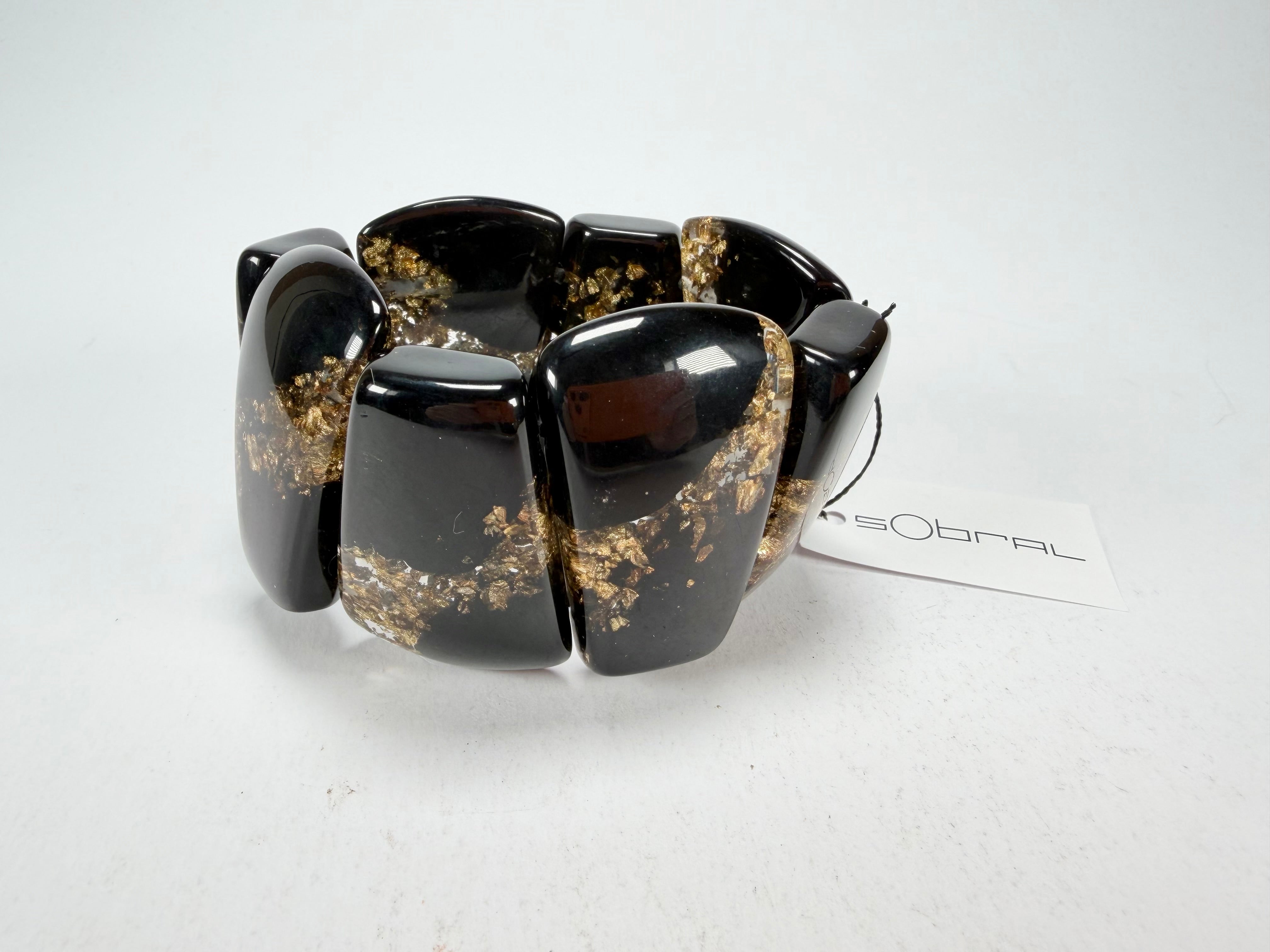 Sobral - Metalique "Rimla" Black & Gold Elasticated Resin Bracelet ( 004498 )