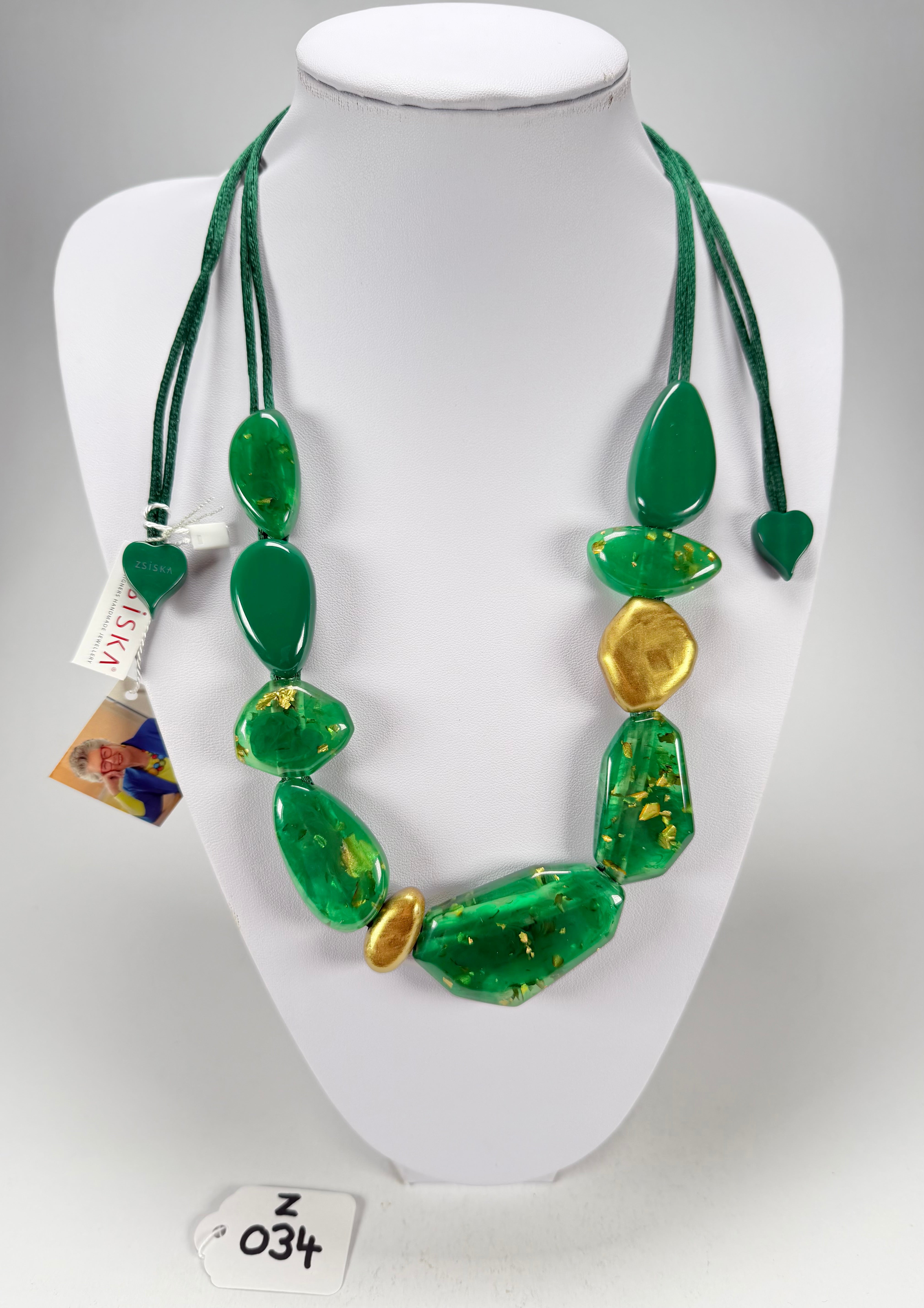 Zsiska - Pyrite "Prue Leith" Emerald with Gold Flakes Resin Necklace ( P200101GREEQ10 )